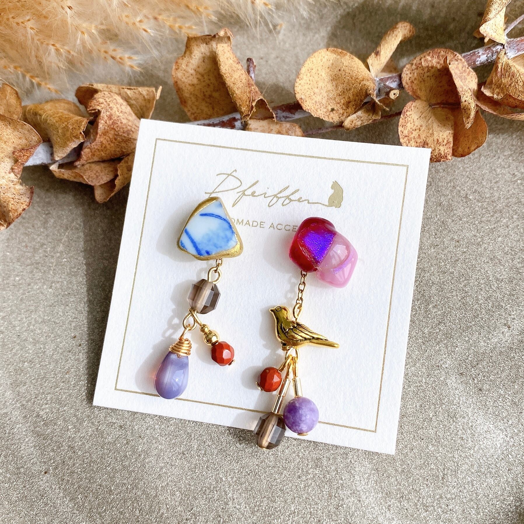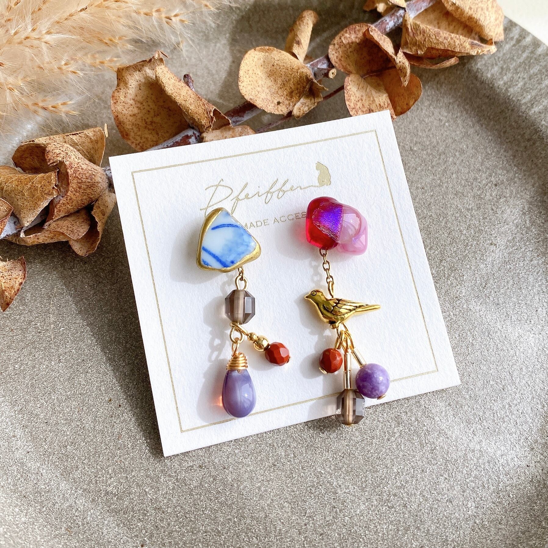 シー陶器と天然石を使い、個性豊かにデザインした一点物シリーズ。