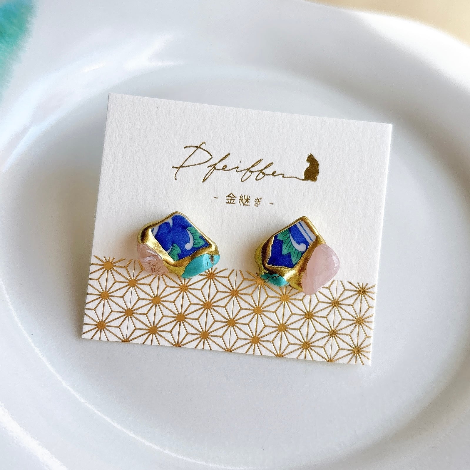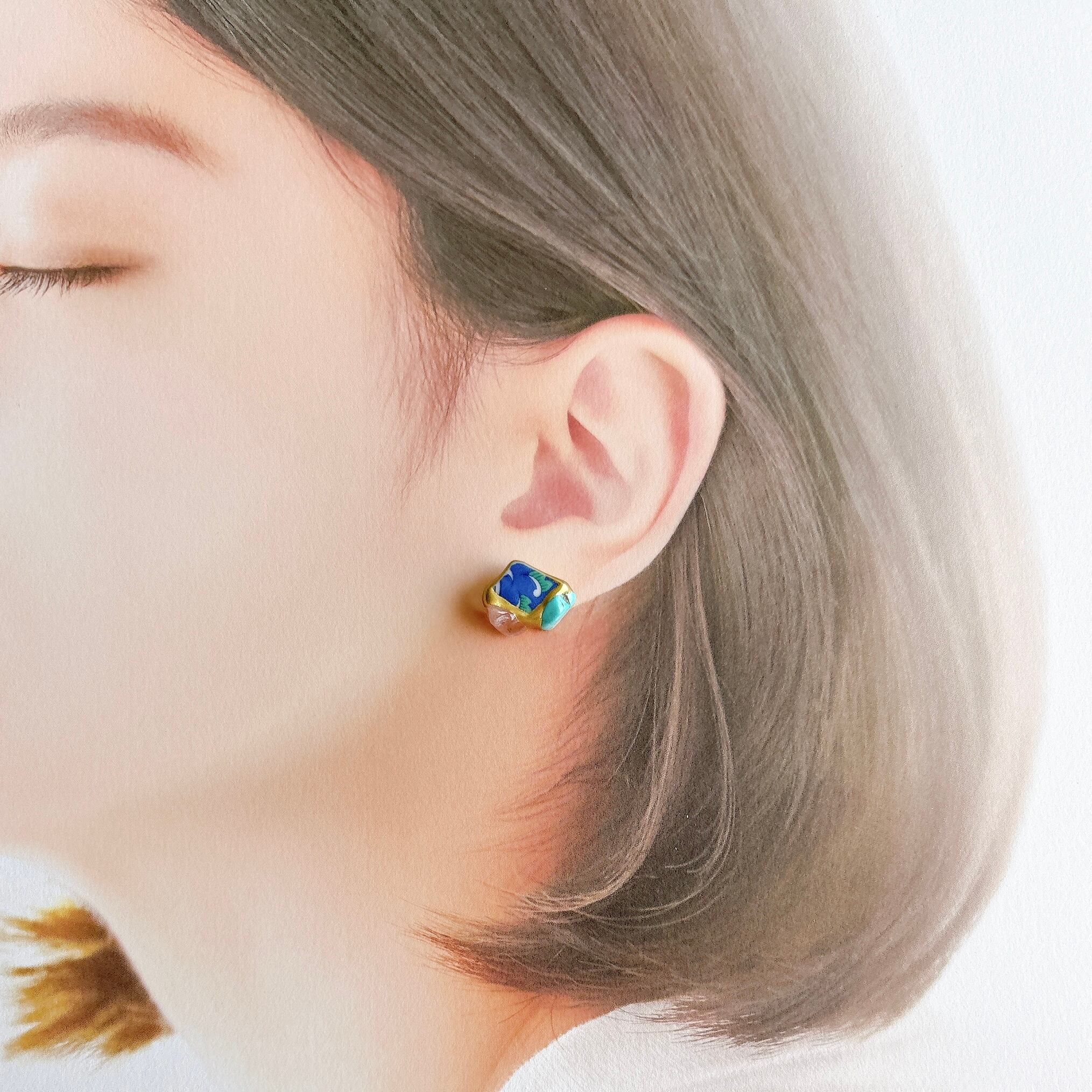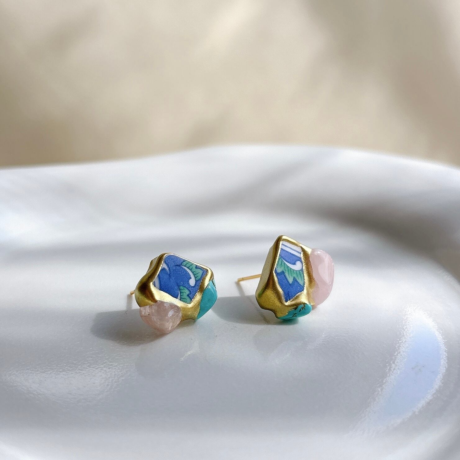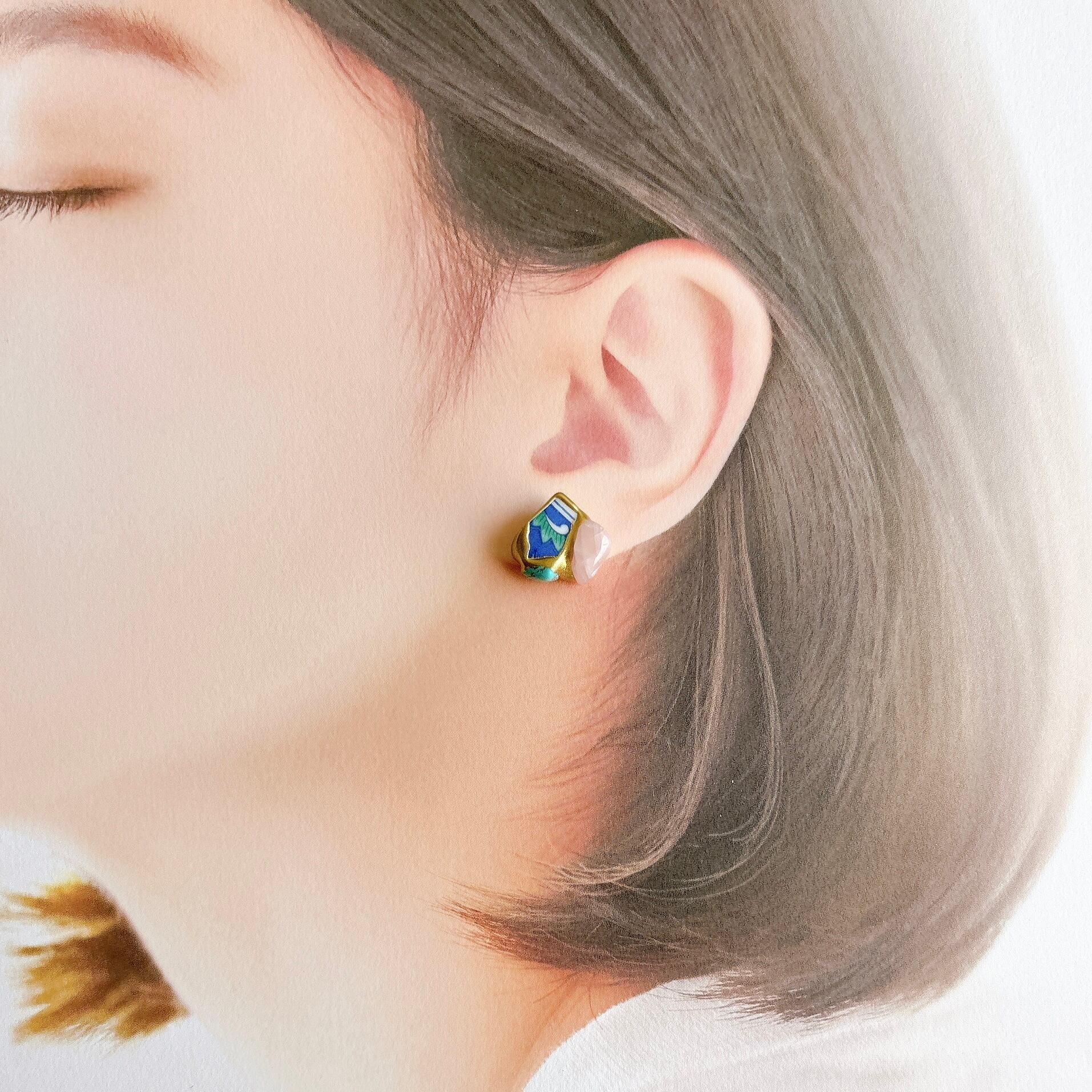 金継ぎ【ピアス】日本の焼き物(有田焼)×天然石