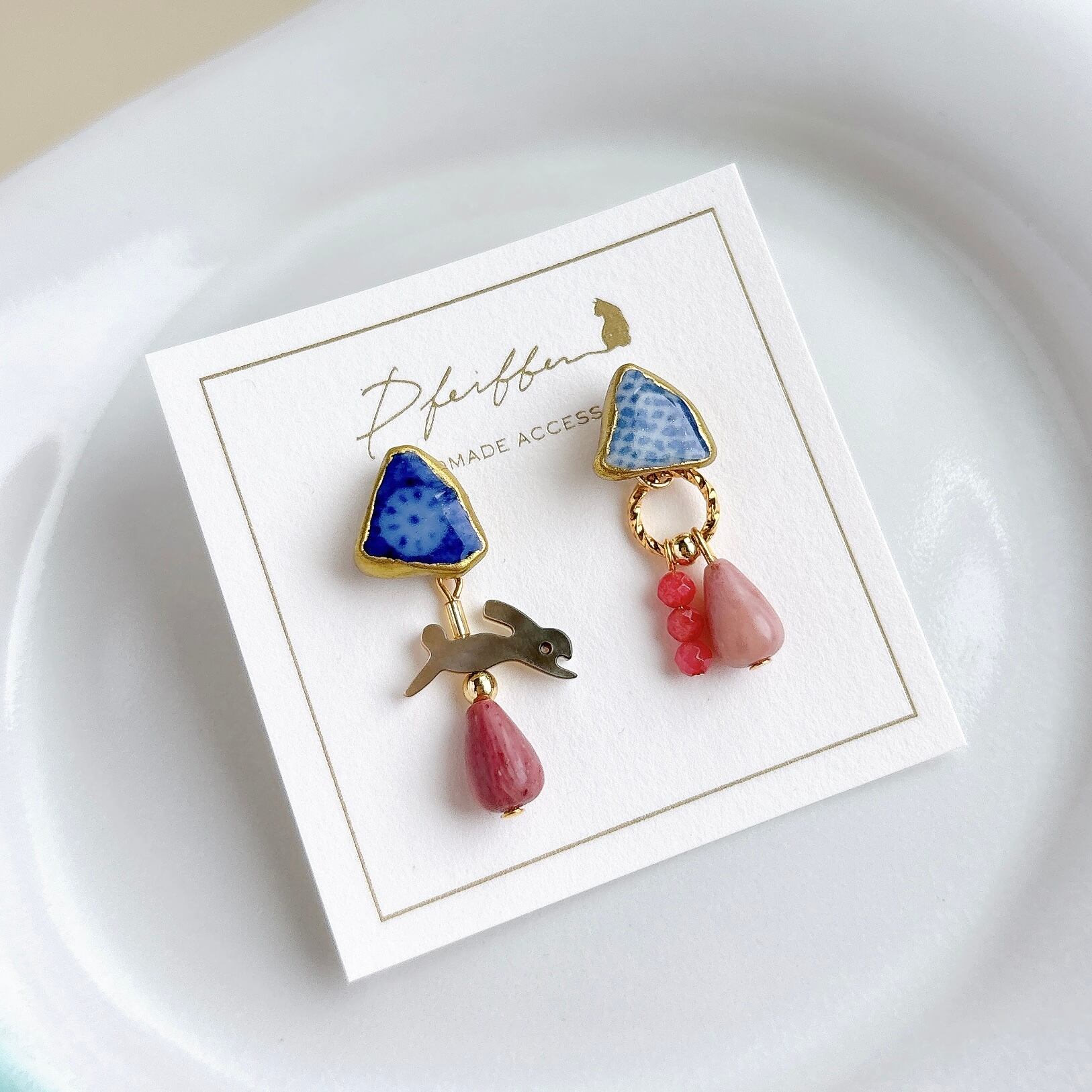 海からの贈り物、『シー陶器』と天然石を使った一点物シリーズ。