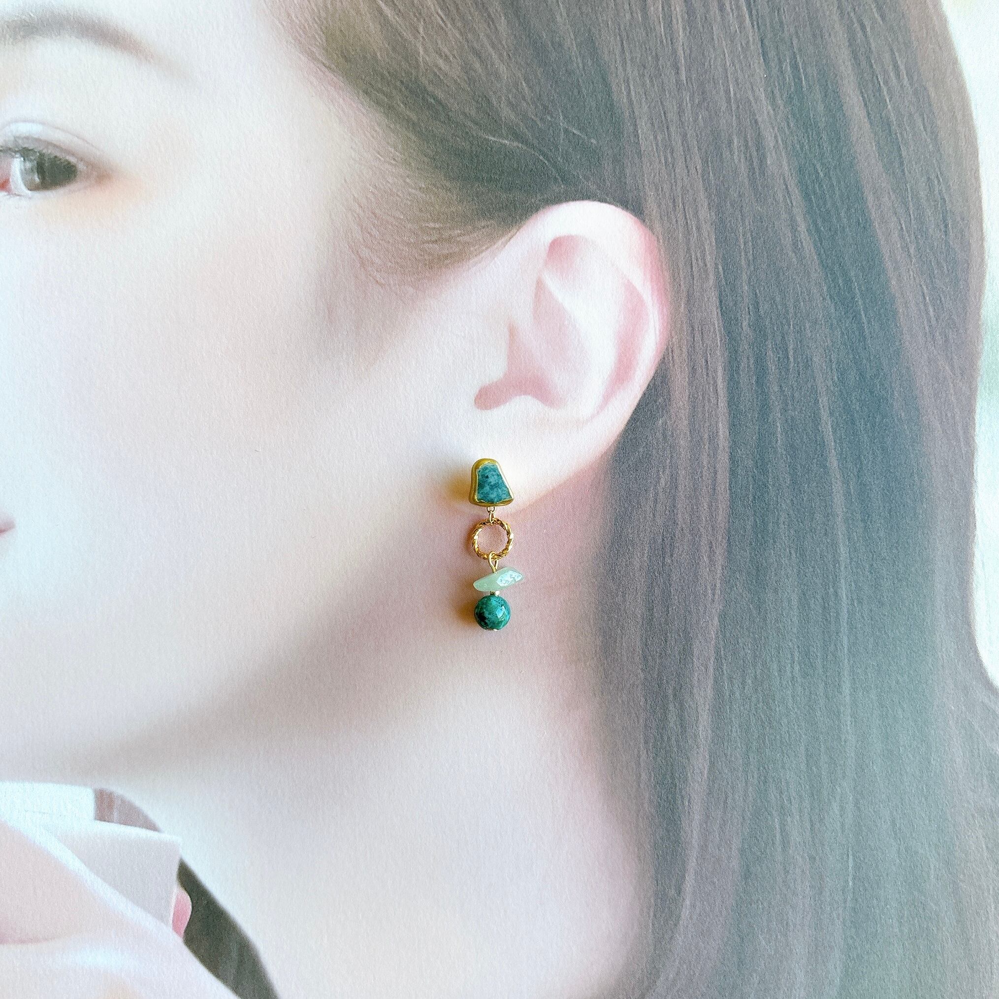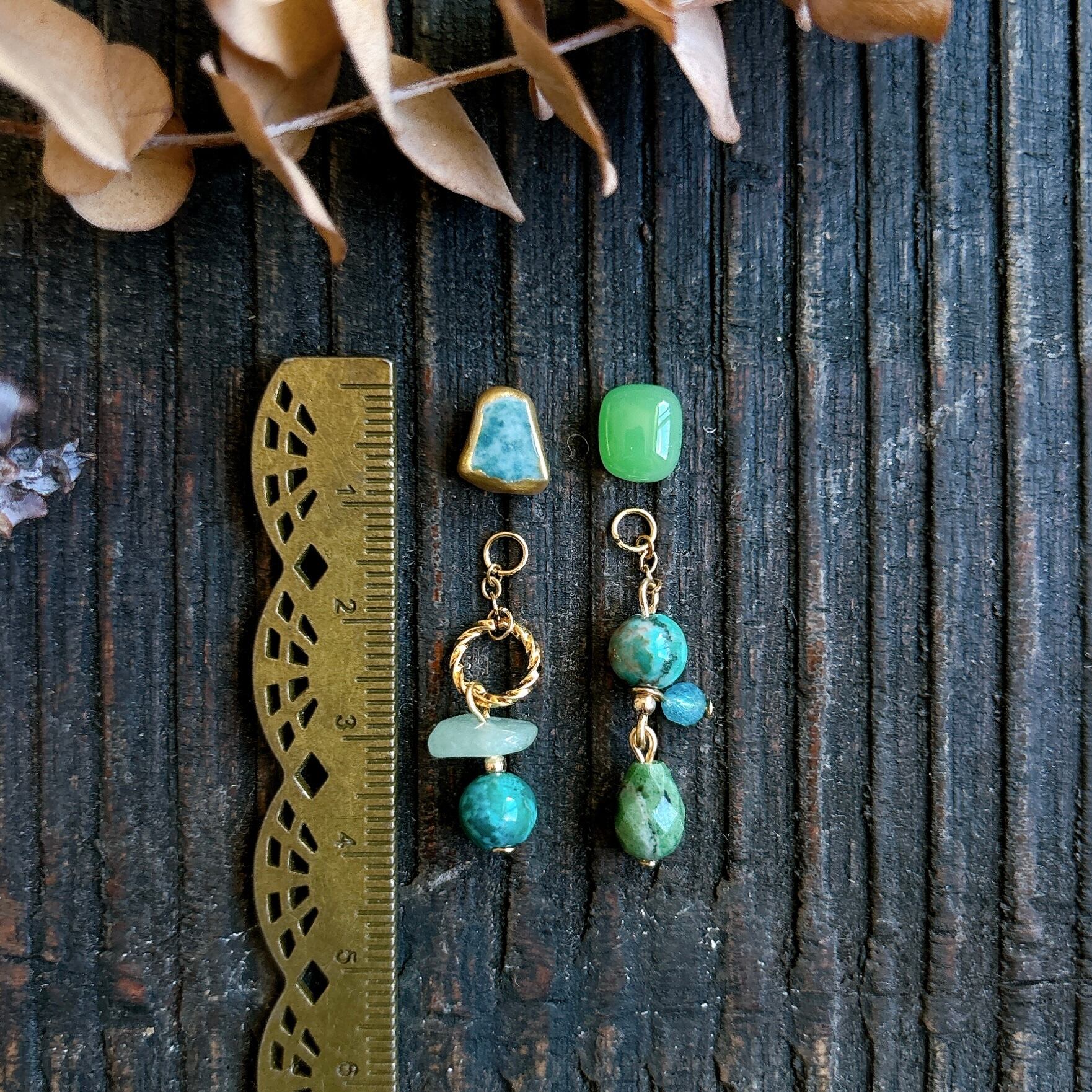 ピアス用に長さだしをしているパーツ(陶器部分と被る箇所)を取り外し、なるべくトップ写真のイメージに近づけるよう調整いたします。