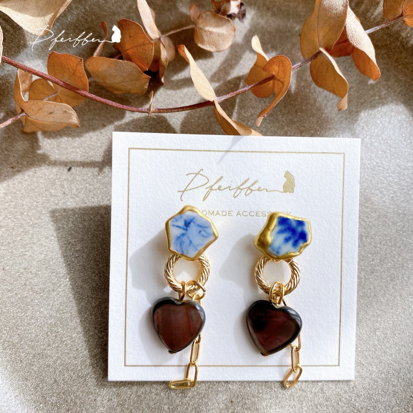 シー陶器と天然石を使い、個性豊かにデザインした一点物シリーズ。