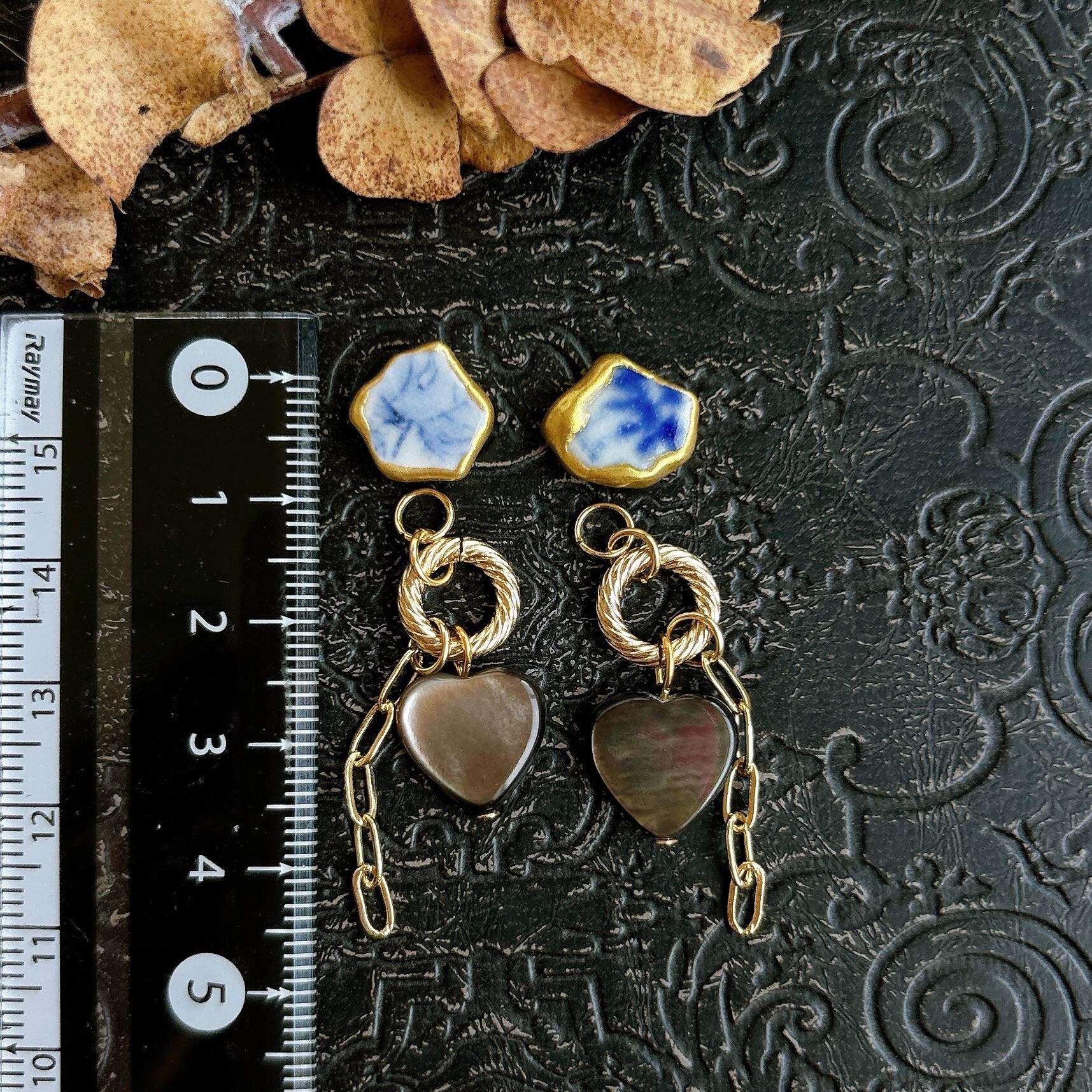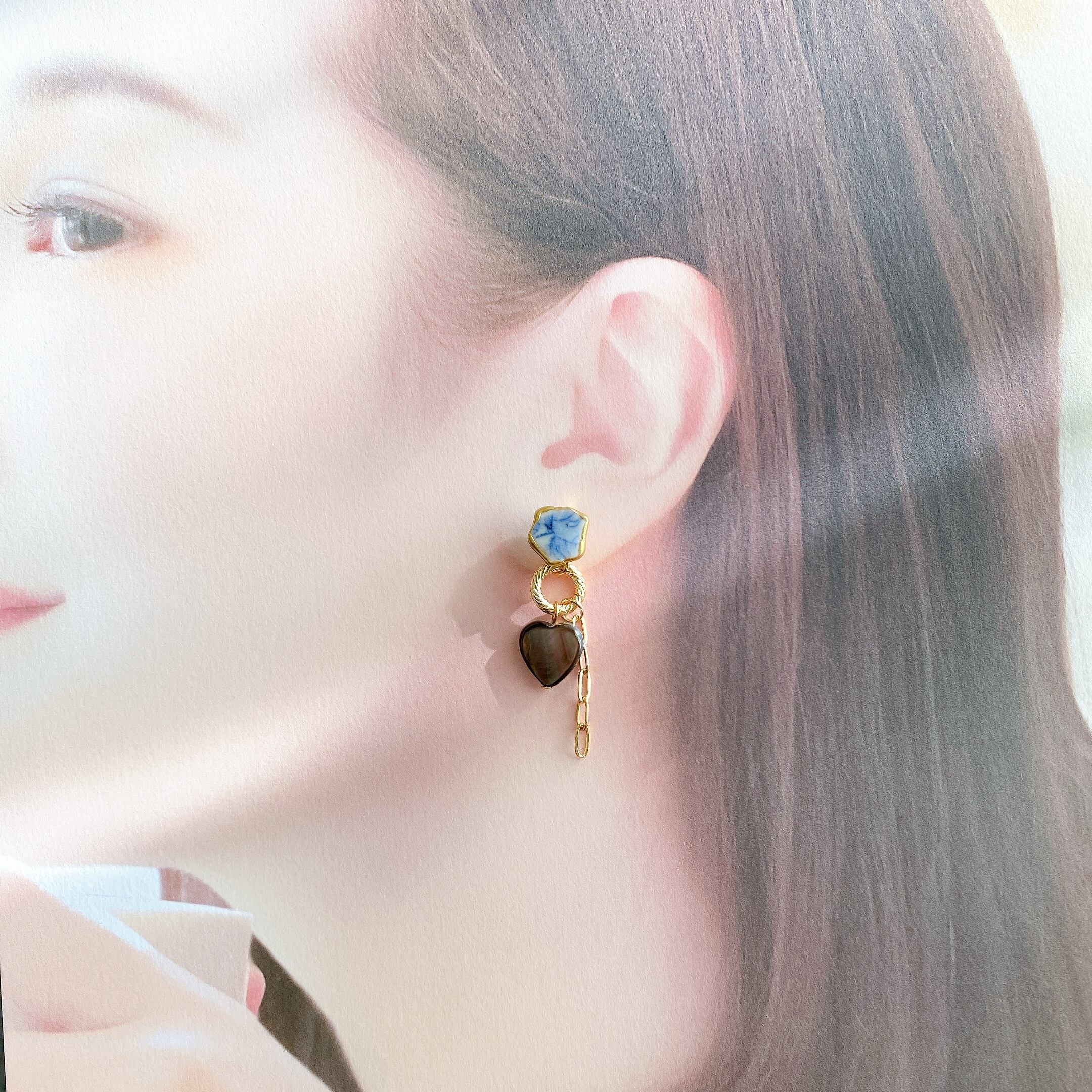 ピアス用に長さだしをしているパーツ(陶器部分と被る箇所)を取り外し、なるべくトップ写真のイメージに近づけるよう調整いたします。