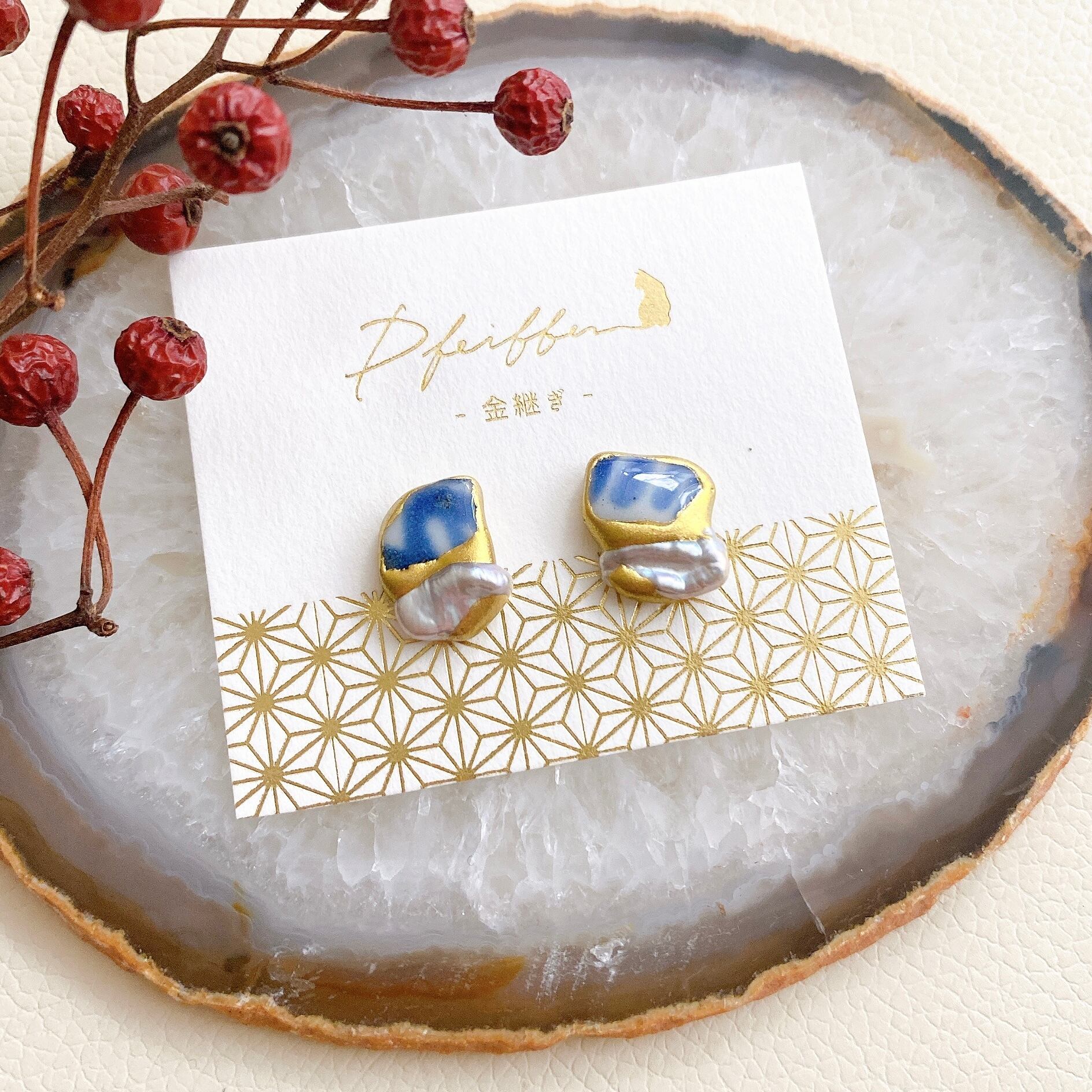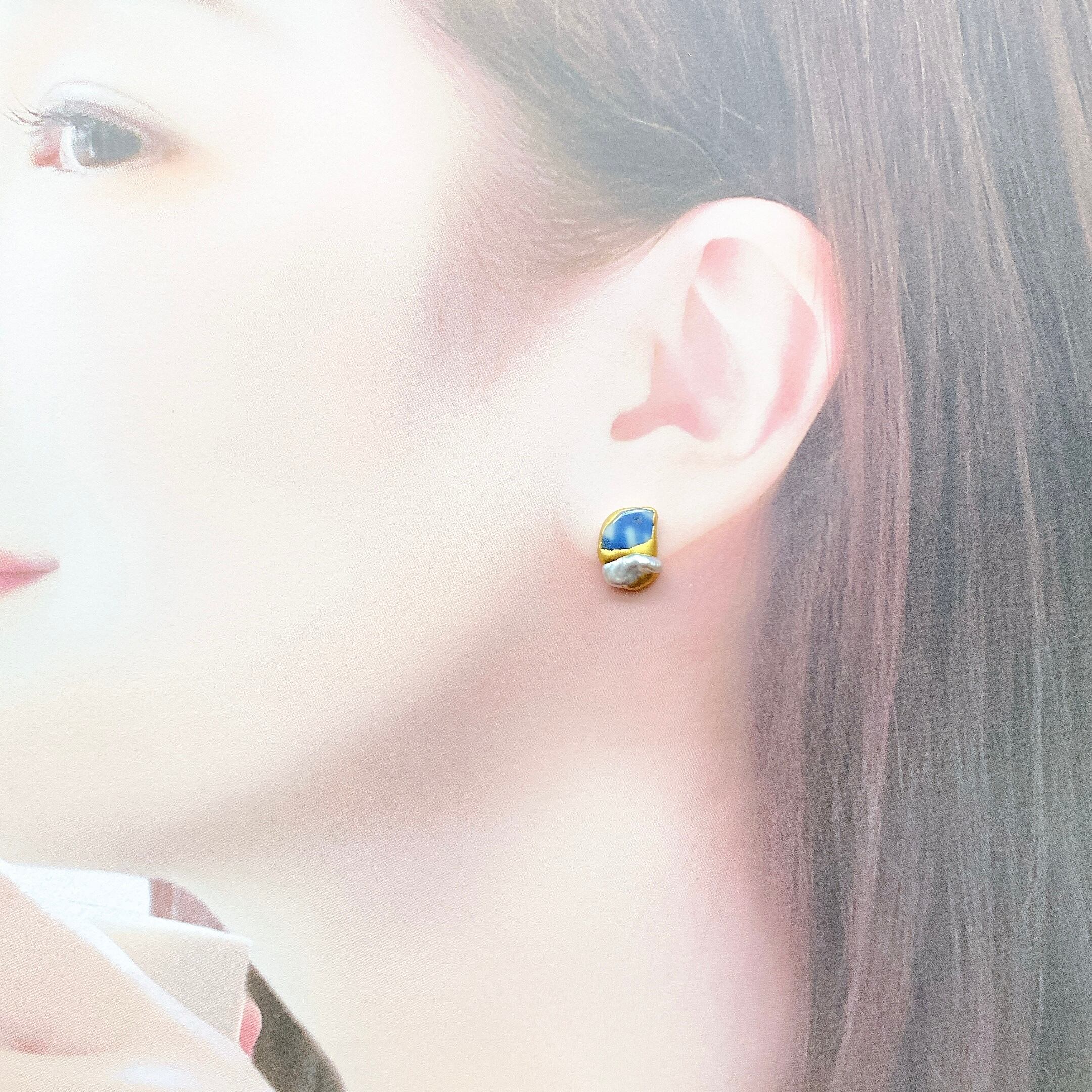パールの煌めきと落ち着きのあるシー陶器が上品に耳元を飾ります。