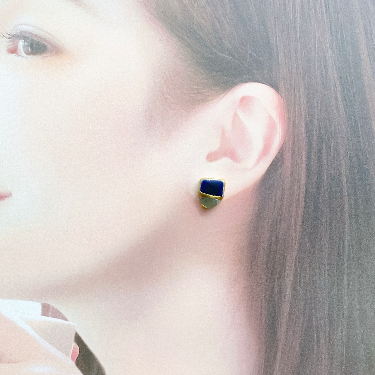 天然石の煌めきと落ち着きのあるシー陶器が上品に耳元を飾ります。