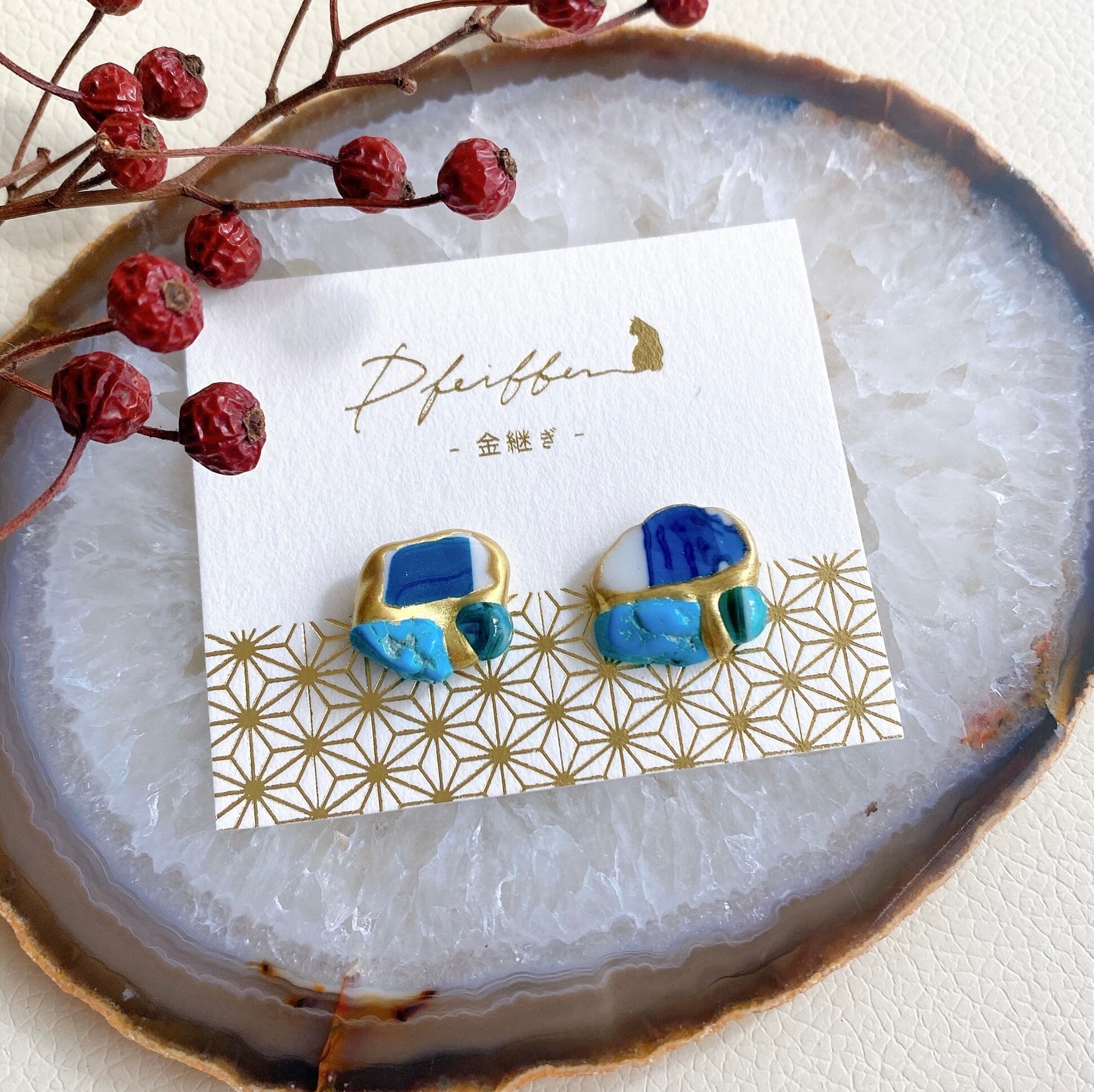 天然石の煌めきと落ち着きのあるシー陶器が上品に耳元を飾ります。