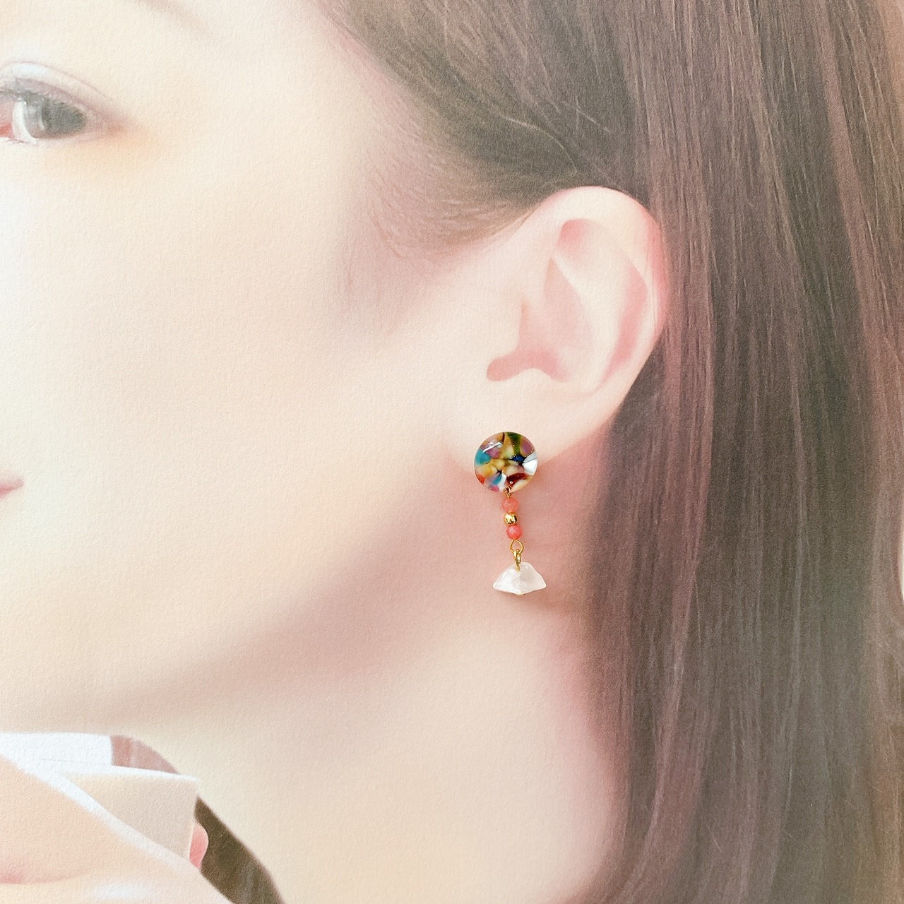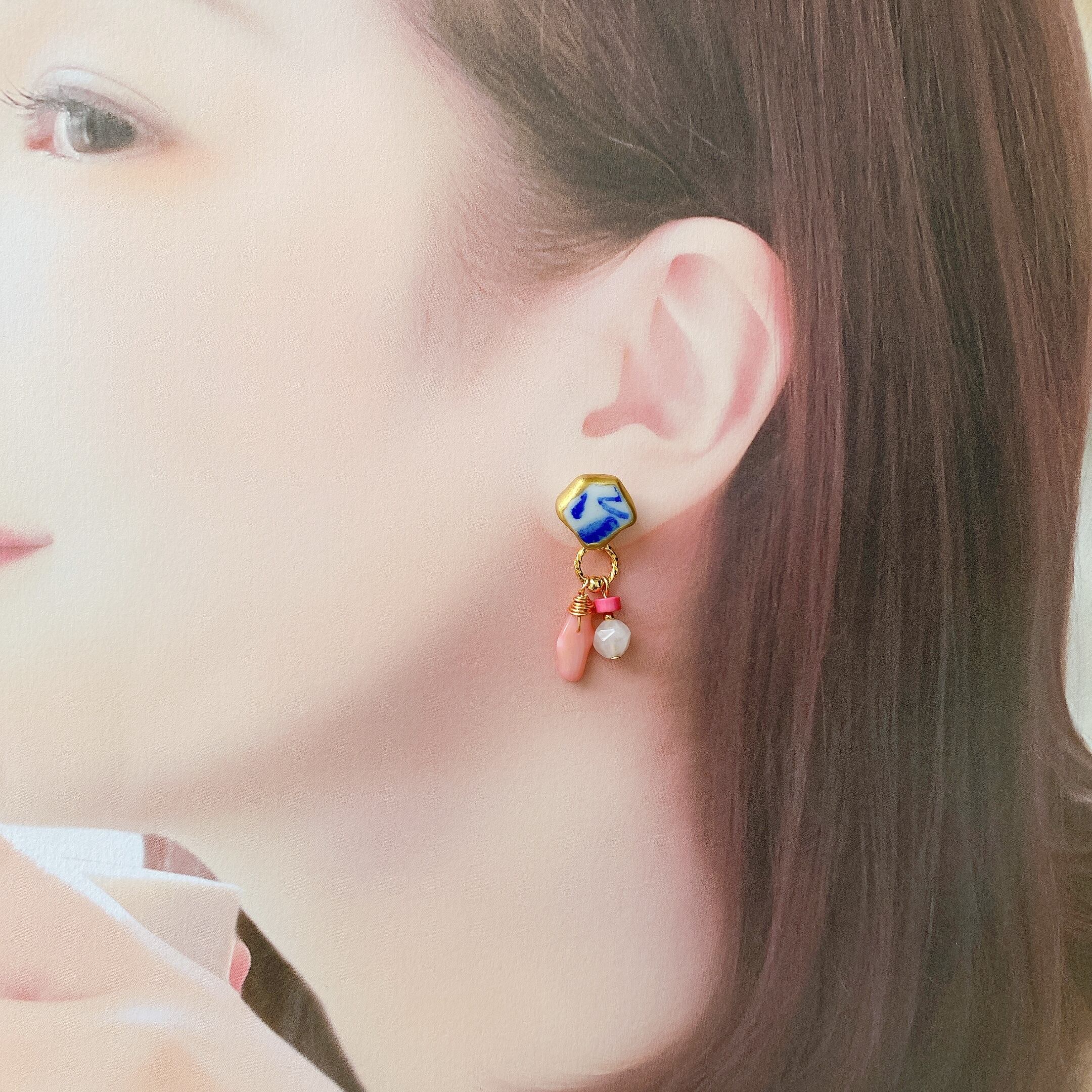 ピアス用に長さだしをしているパーツ(陶器部分と被る箇所)を取り外し、なるべくトップ写真のイメージに近づけるよう調整いたします。