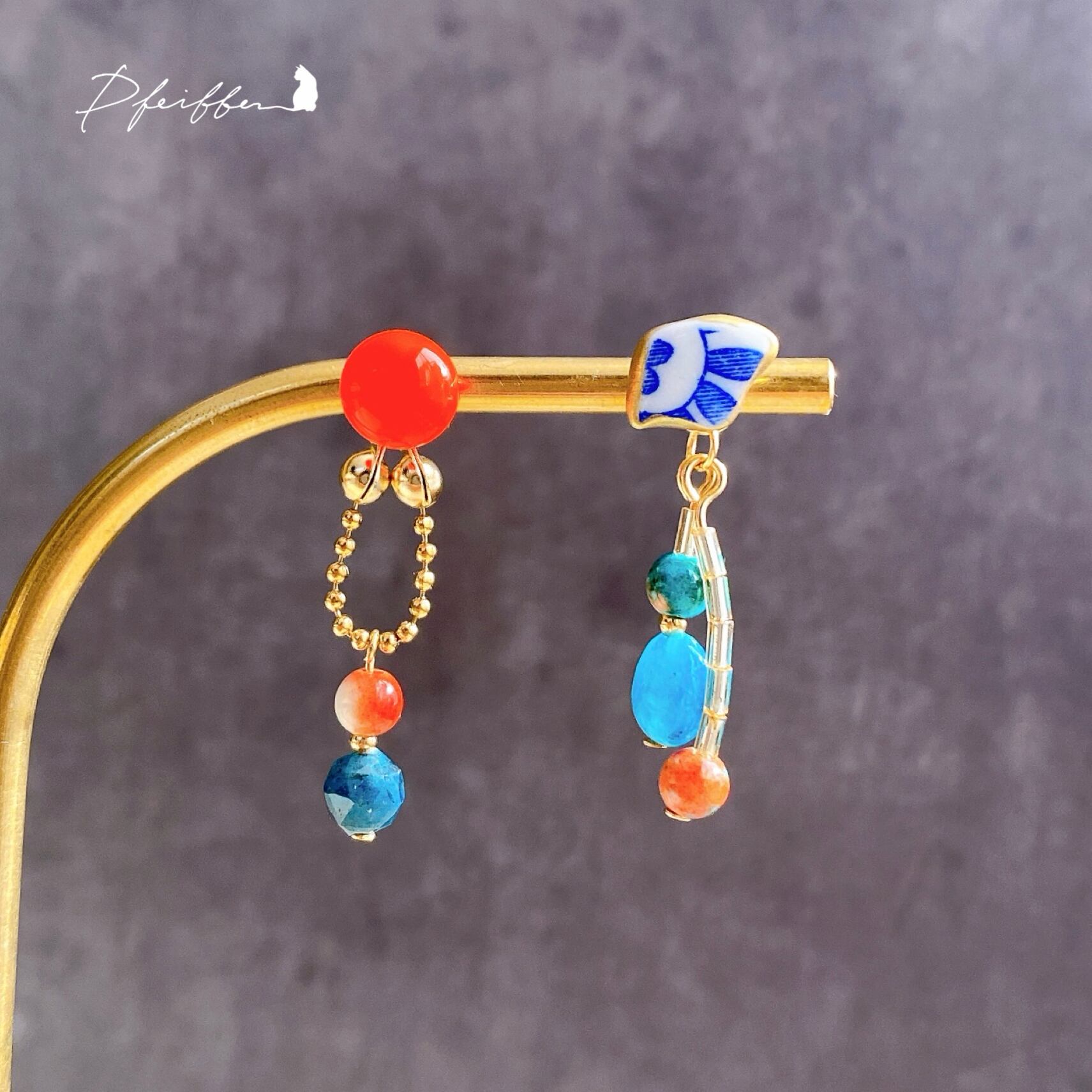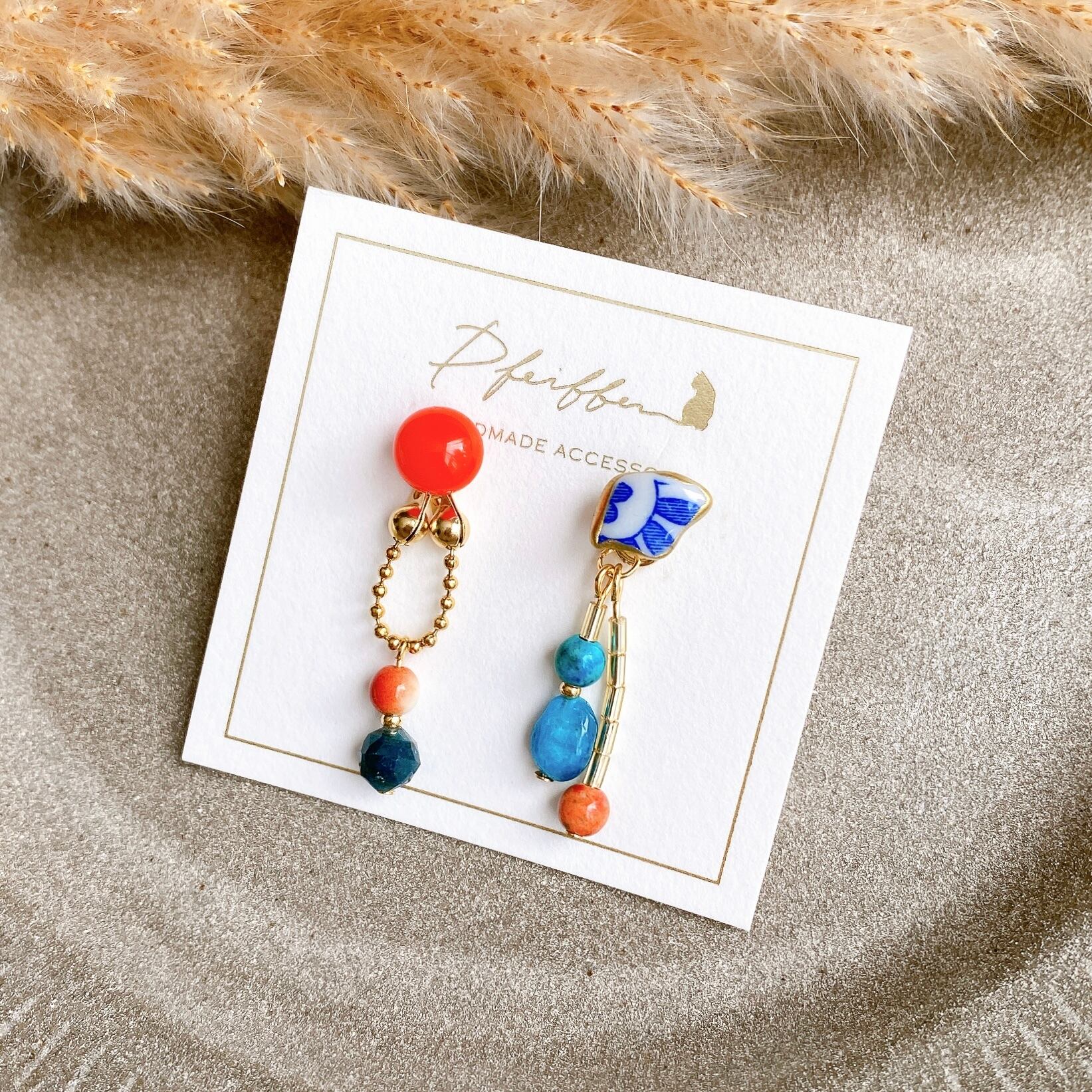 【海の遊び心】2way シー陶器×アパタイト ピアス/イヤリング