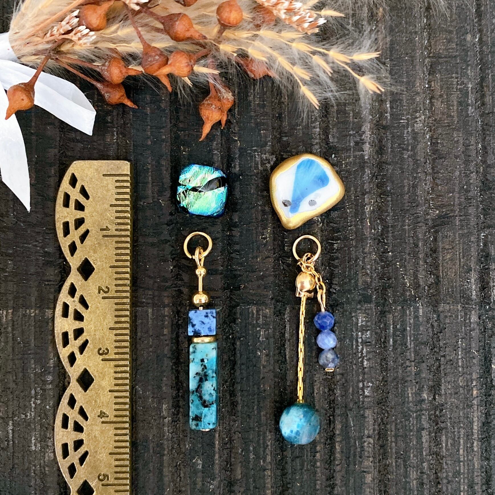 ピアス用に長さだしをしているパーツ(陶器部分と被る箇所)を取り外し、なるべくトップ写真のイメージに近づけるよう調整いたします。