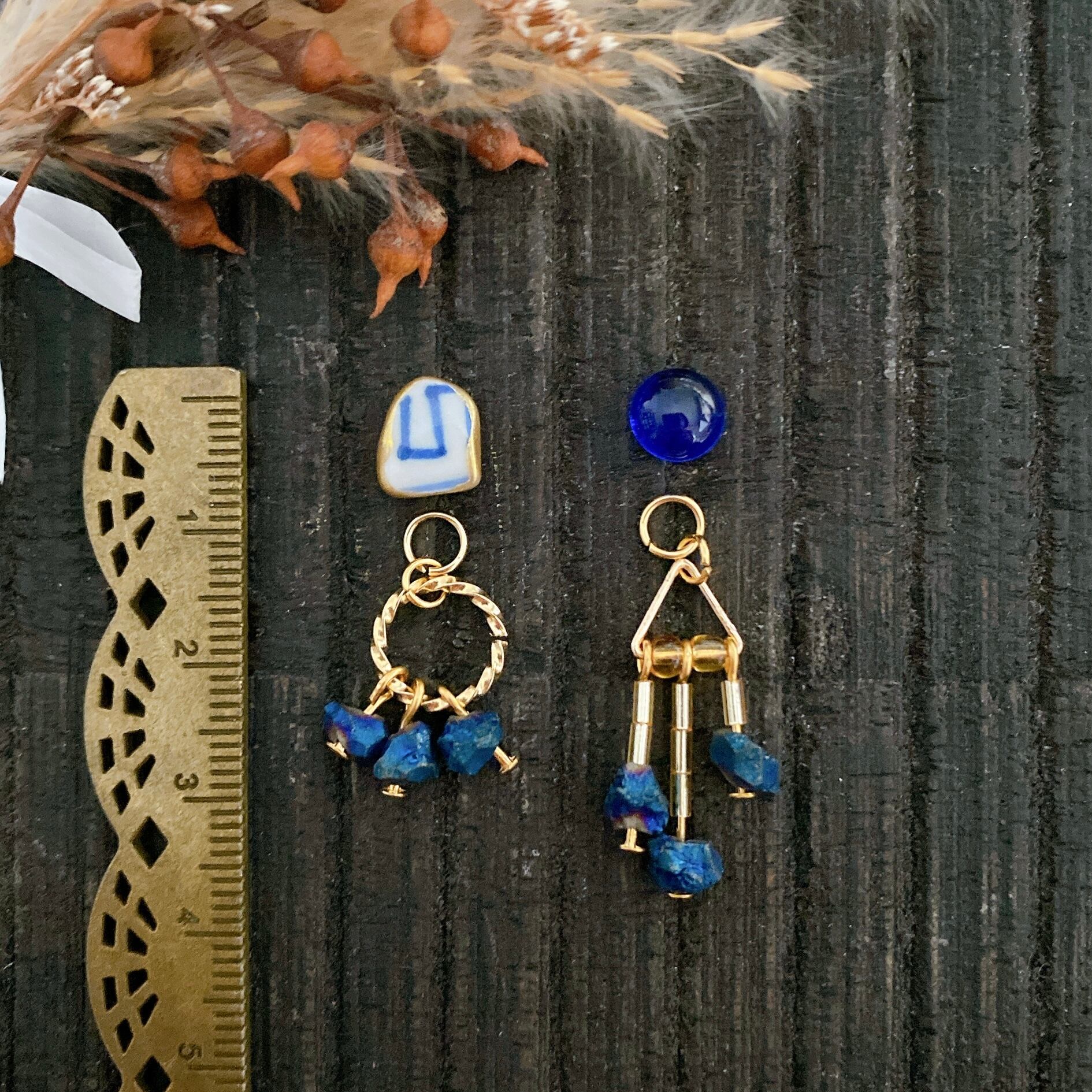 ピアス用に長さだしをしているパーツ(陶器部分と被る箇所)を取り外し、なるべくトップ写真のイメージに近づけるよう調整いたします。