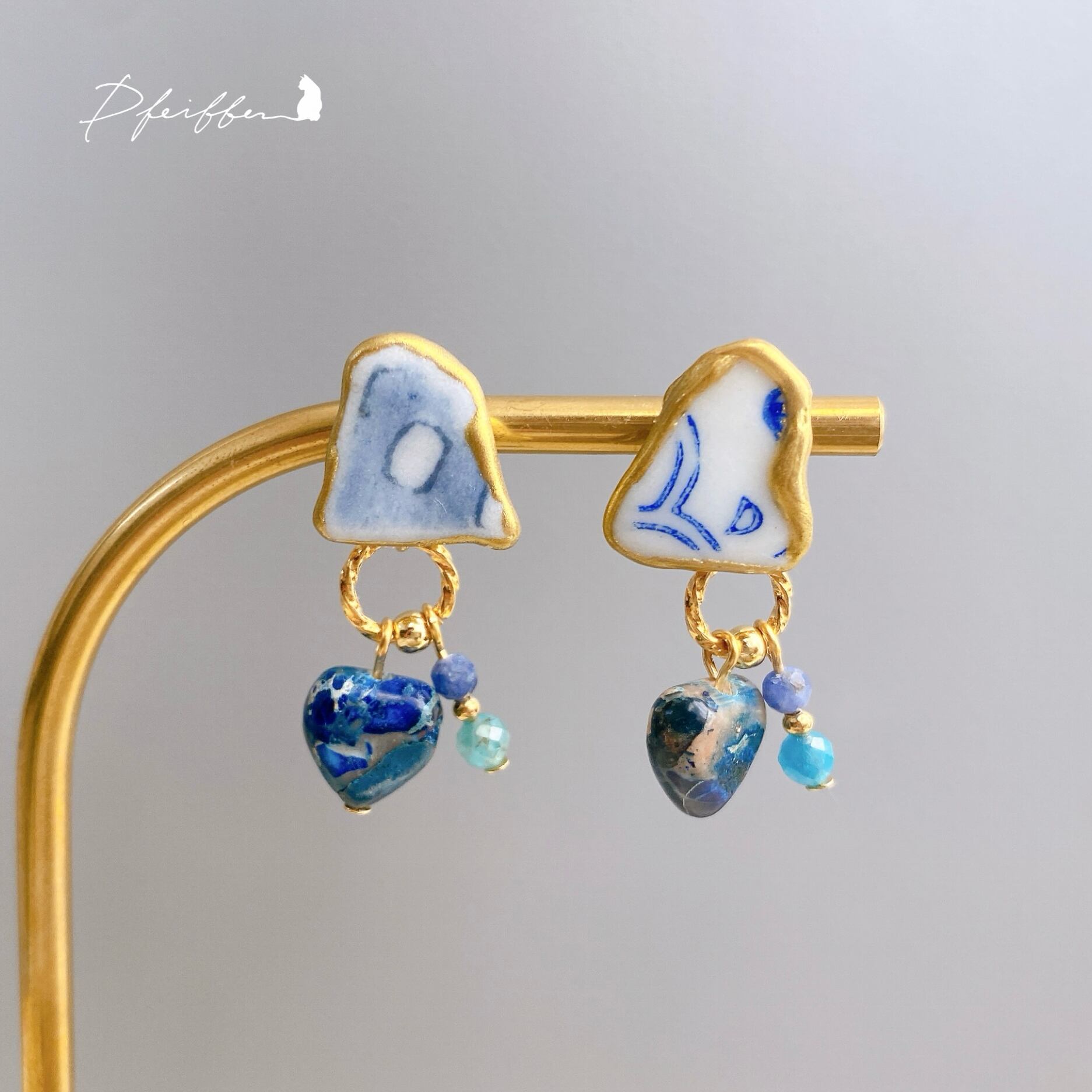 シー陶器と天然石を使い、個性豊かにデザインした一点物シリーズ。
