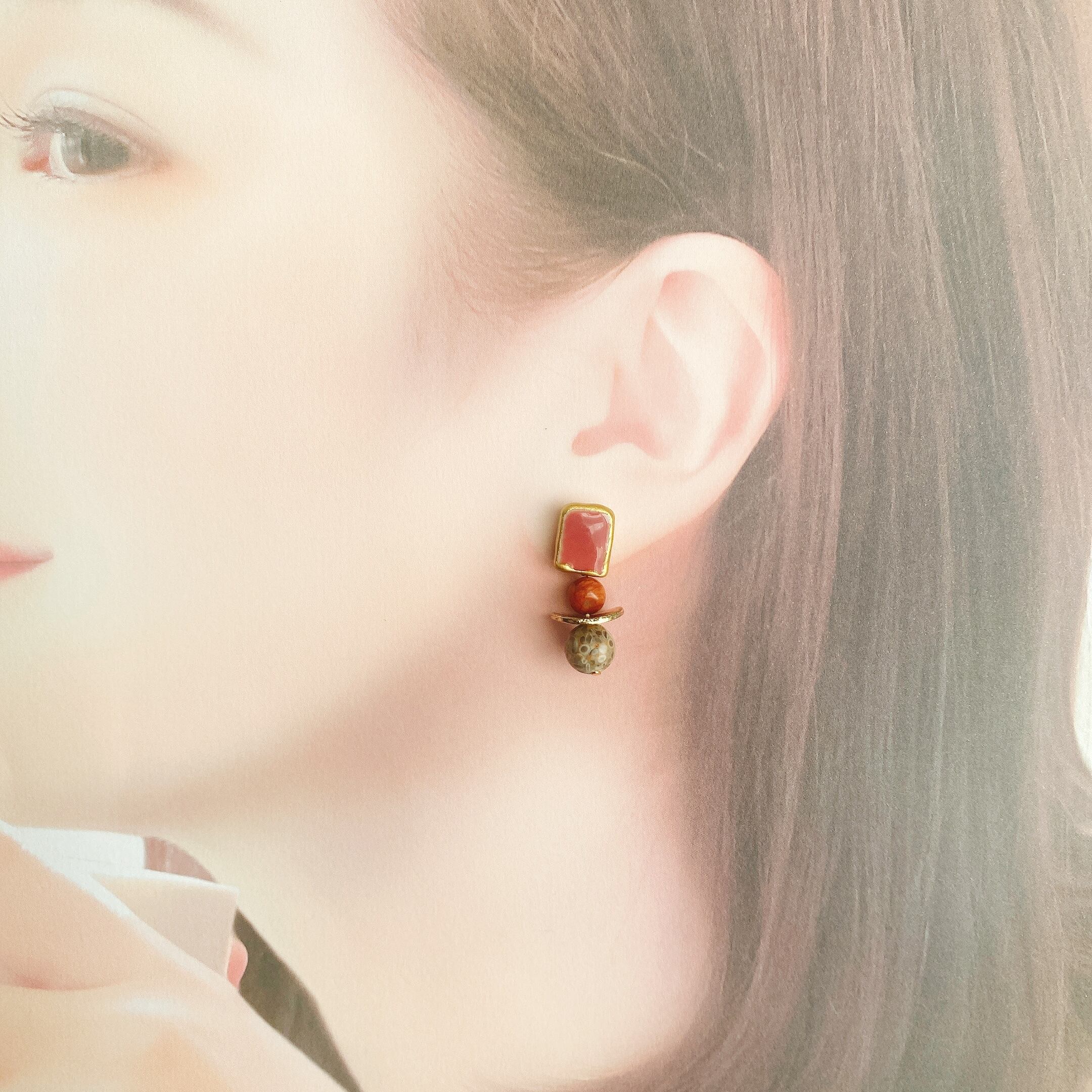 ピアス用に長さだしをしているパーツ(陶器部分と被る箇所)を取り外し、なるべくトップ写真のイメージに近づけるよう調整いたします。