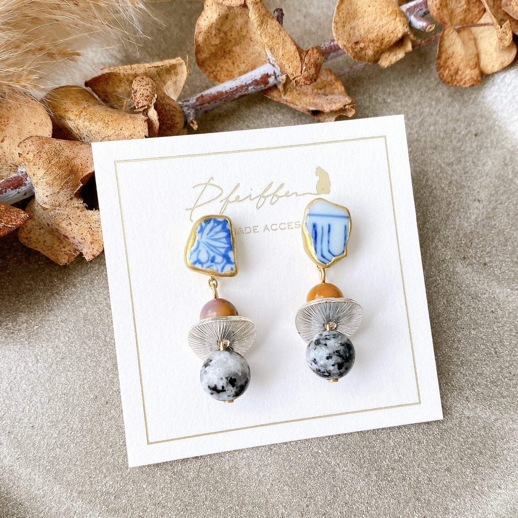 シー陶器と天然石を使い、個性豊かにデザインした一点物シリーズ。