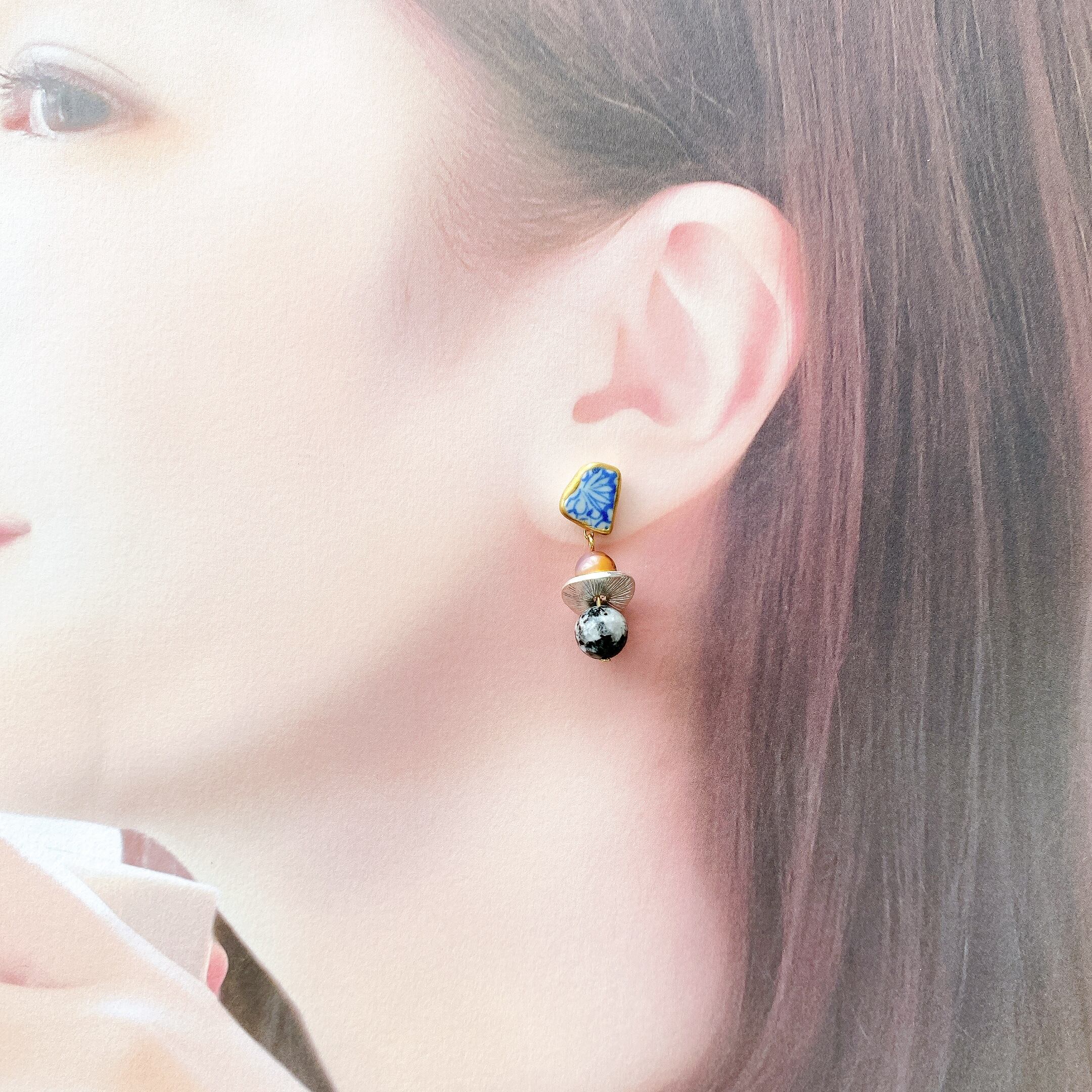 ピアス用に長さだしをしているパーツ(陶器部分と被る箇所)を取り外し、なるべくトップ写真のイメージに近づけるよう調整いたします。
