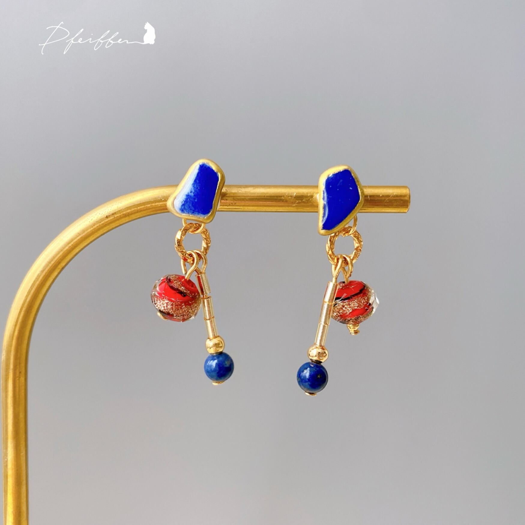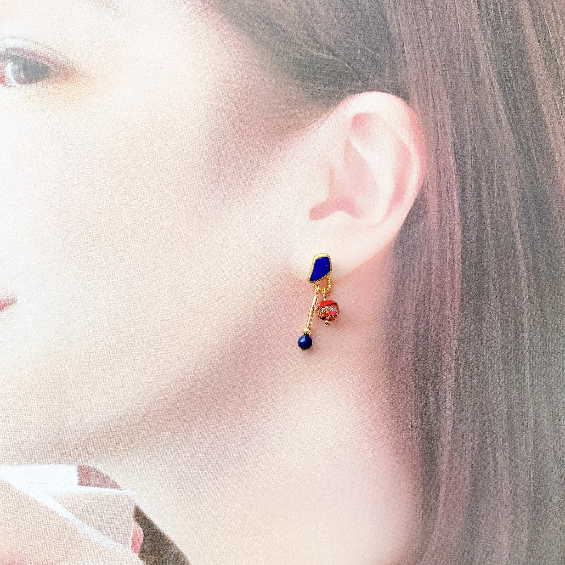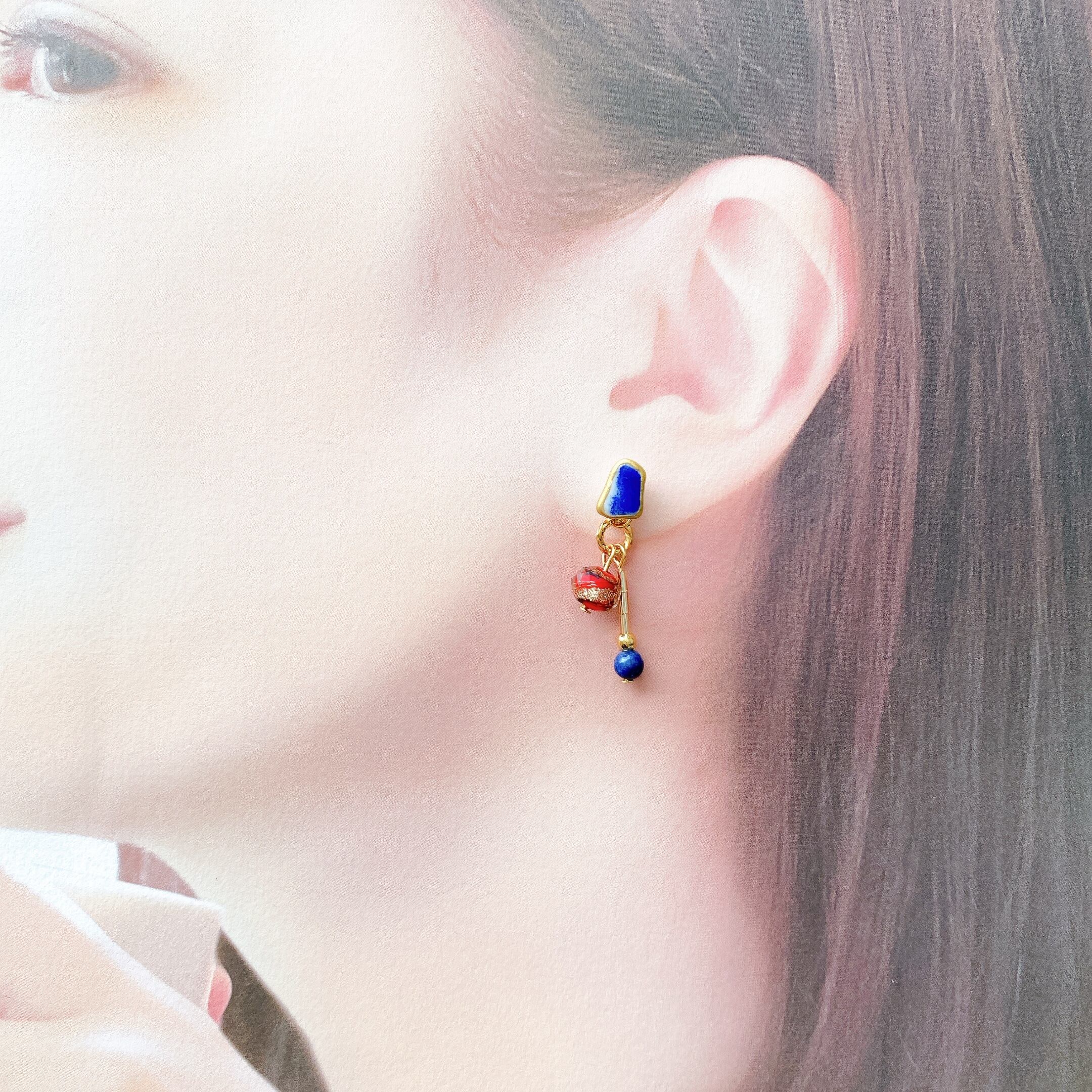 ピアス用に長さだしをしているパーツ(陶器部分と被る箇所)を取り外し、なるべくトップ写真のイメージに近づけるよう調整いたします。