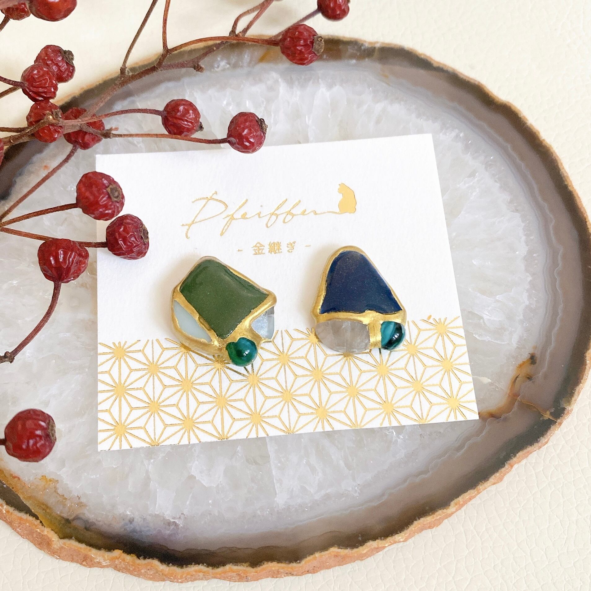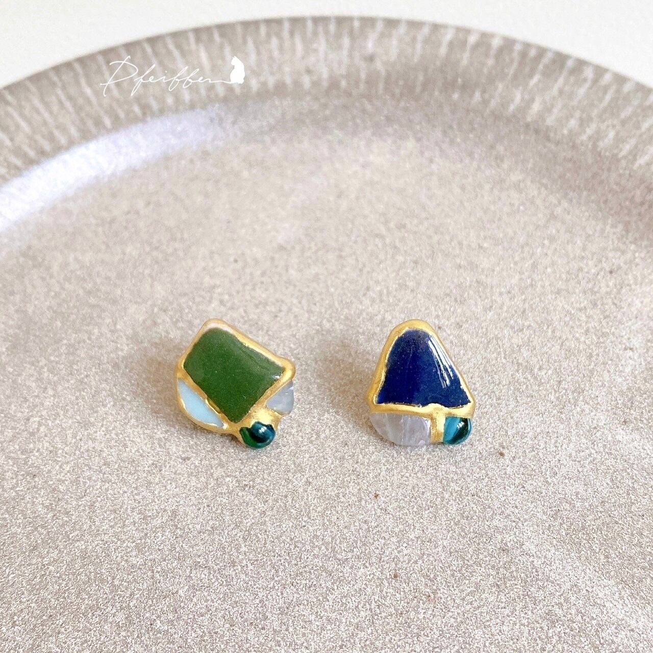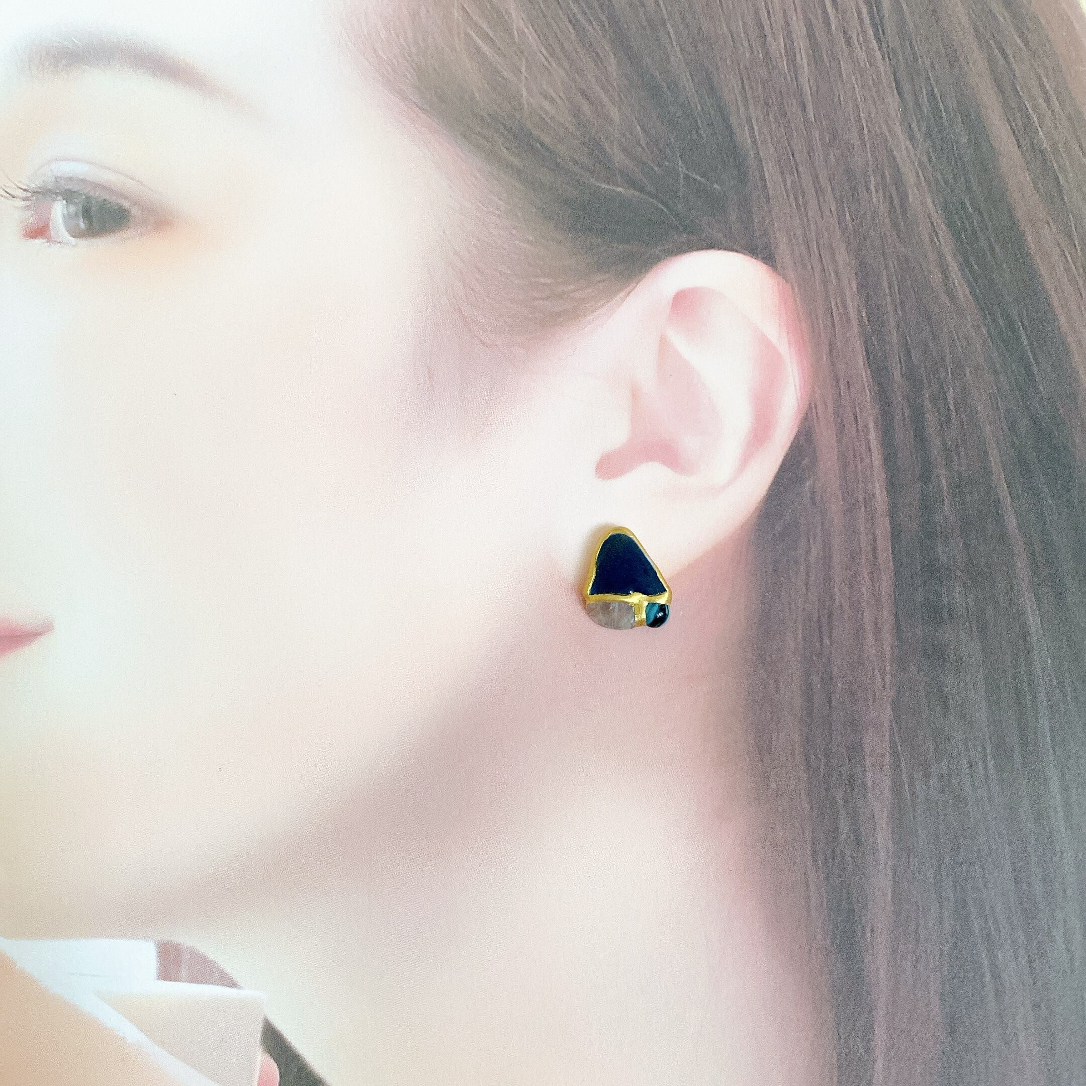 天然石とパールの煌めきと落ち着きのあるシー陶器が上品に耳元を飾ります。