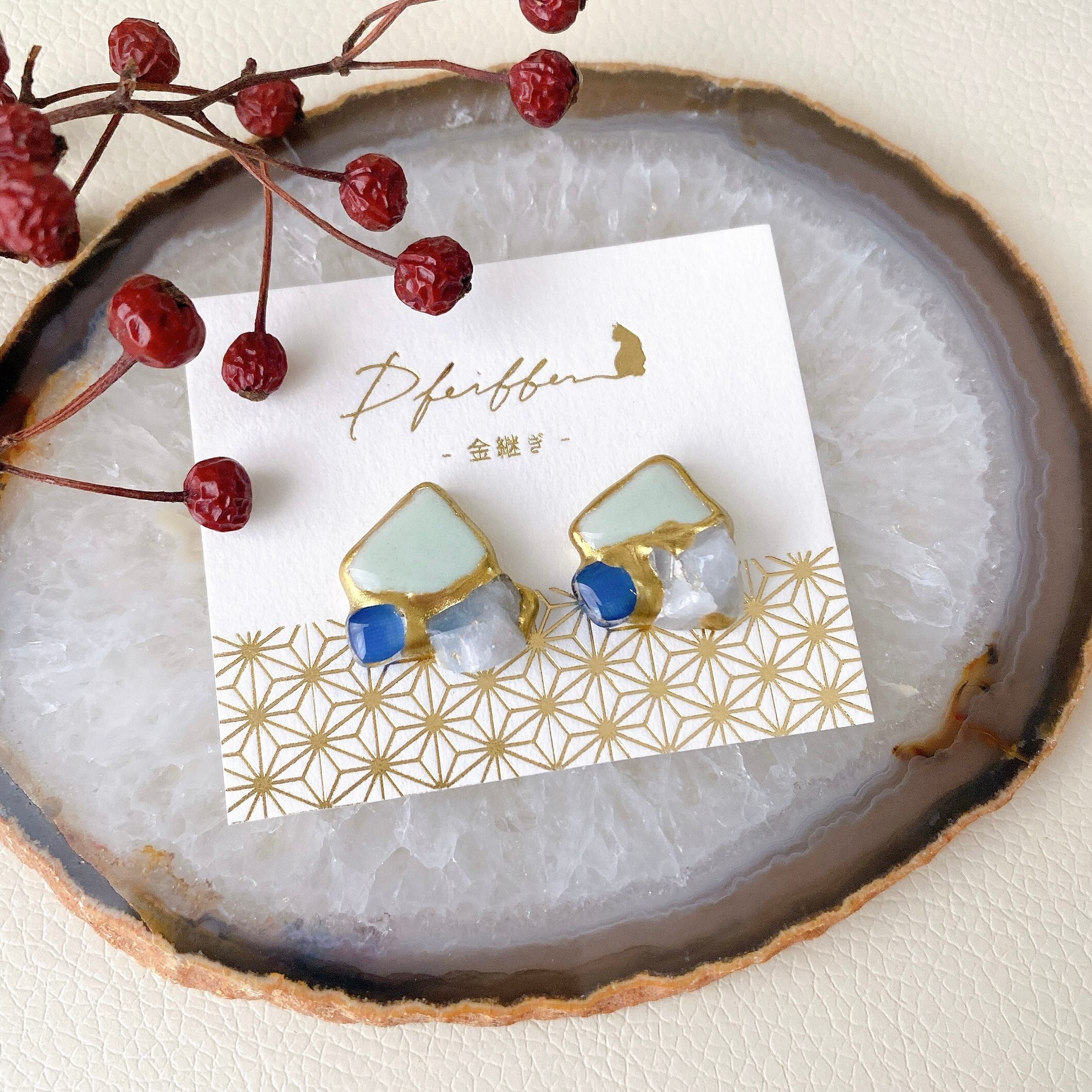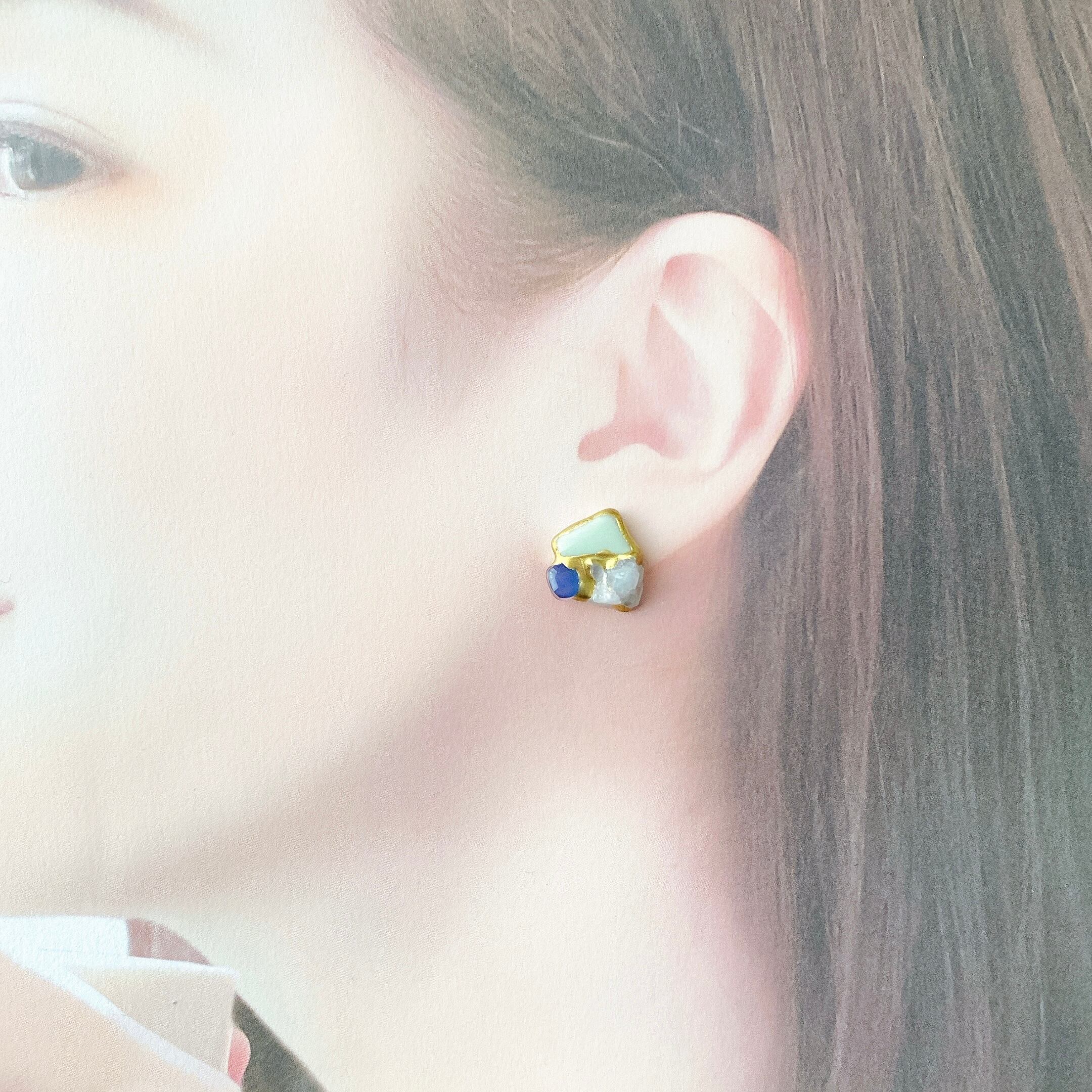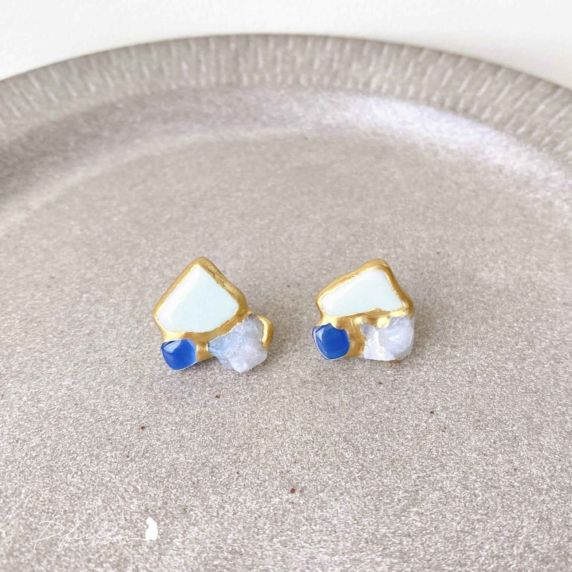 華やかな天然石と落ち着きのあるシー陶器が上品に耳元を飾ります。