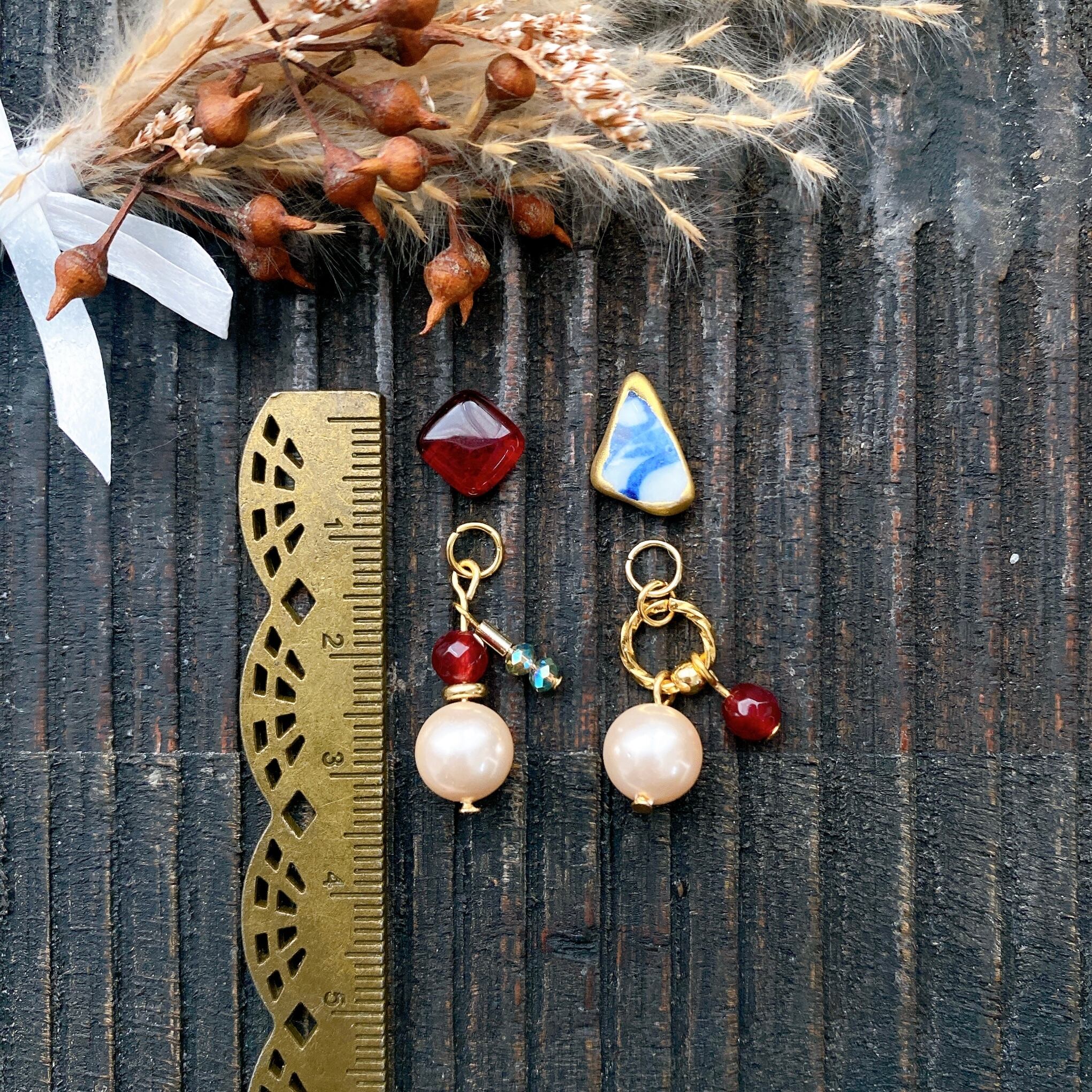 ピアス用に長さだしをしているパーツ(陶器部分と被る箇所)を取り外し、なるべくトップ写真のイメージに近づけるよう調整いたします。