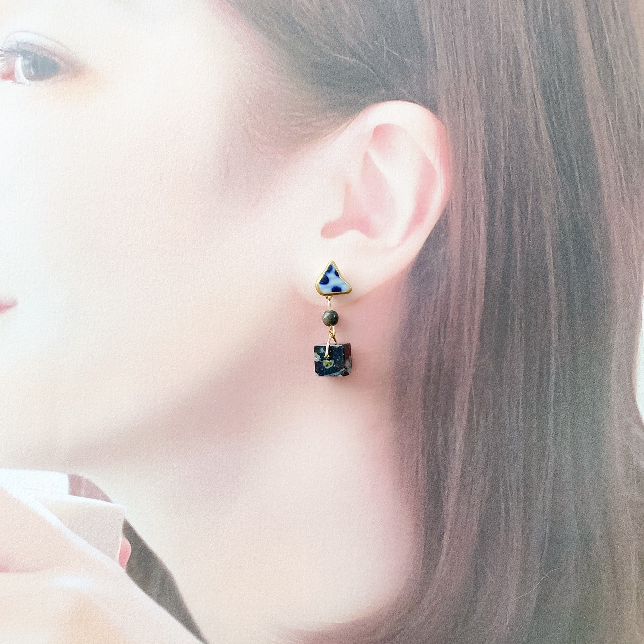 ピアス用に長さだしをしているパーツ(陶器部分と被る箇所)を取り外し、なるべくトップ写真のイメージに近づけるよう調整いたします。