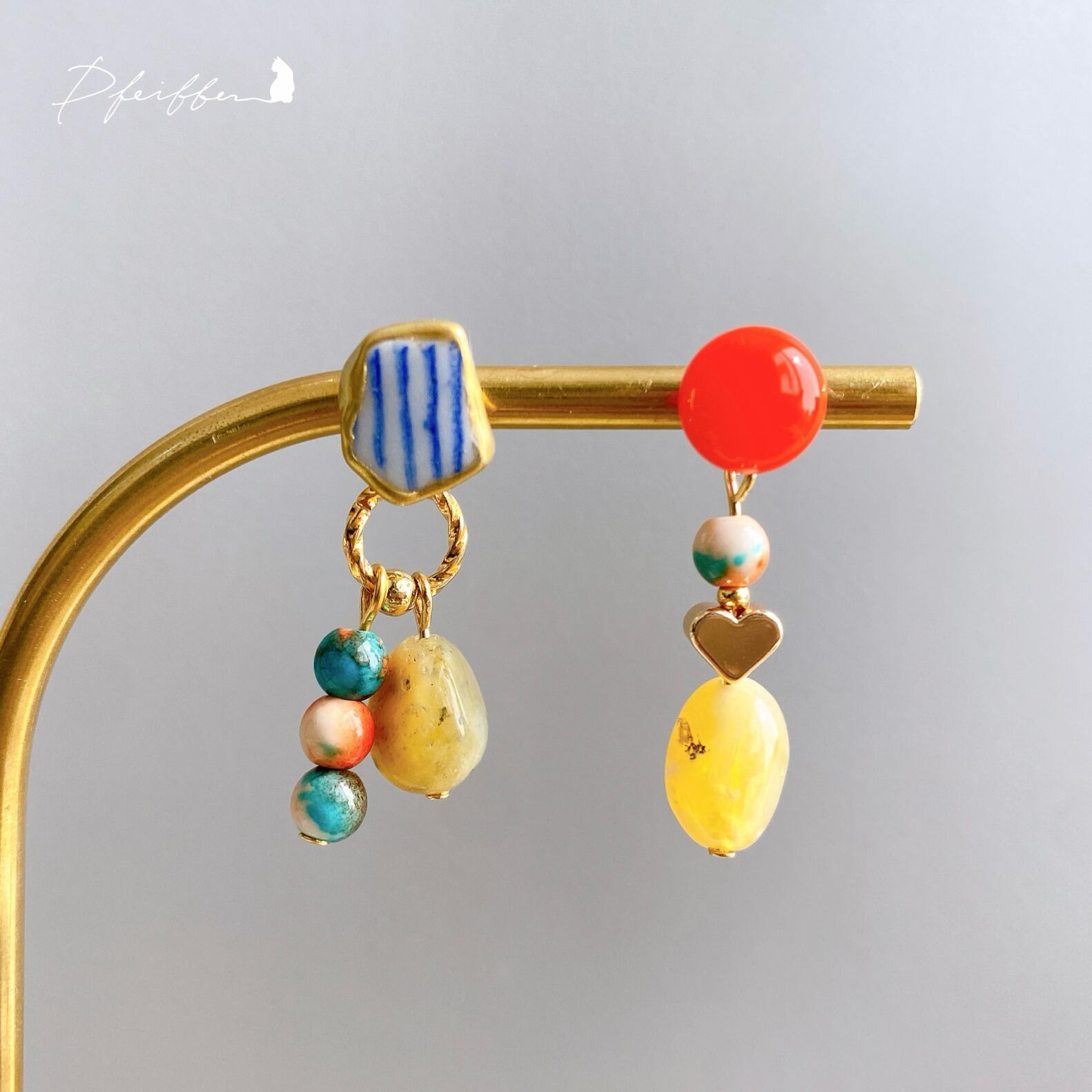 シー陶器と天然石を使い、個性豊かにデザインした一点物シリーズ。