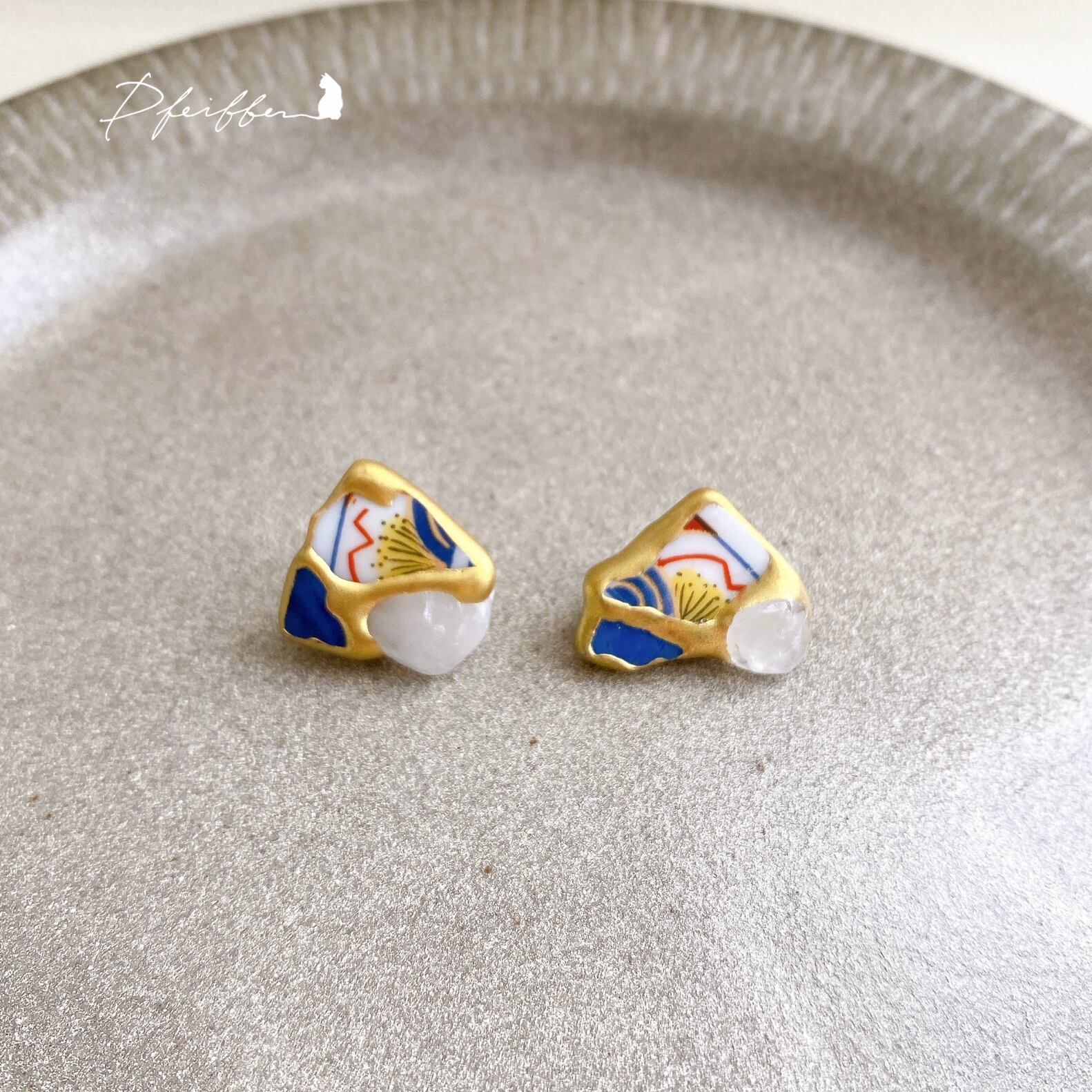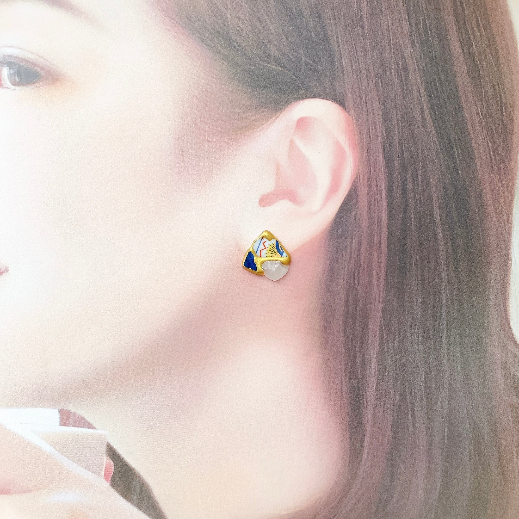 【日本の焼き物 】 有田焼とクオーツ 金継ぎピアス/イヤリング