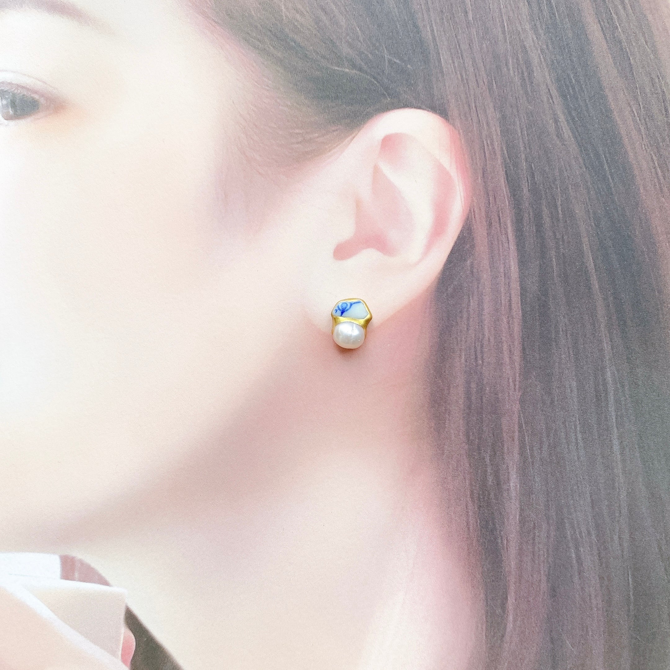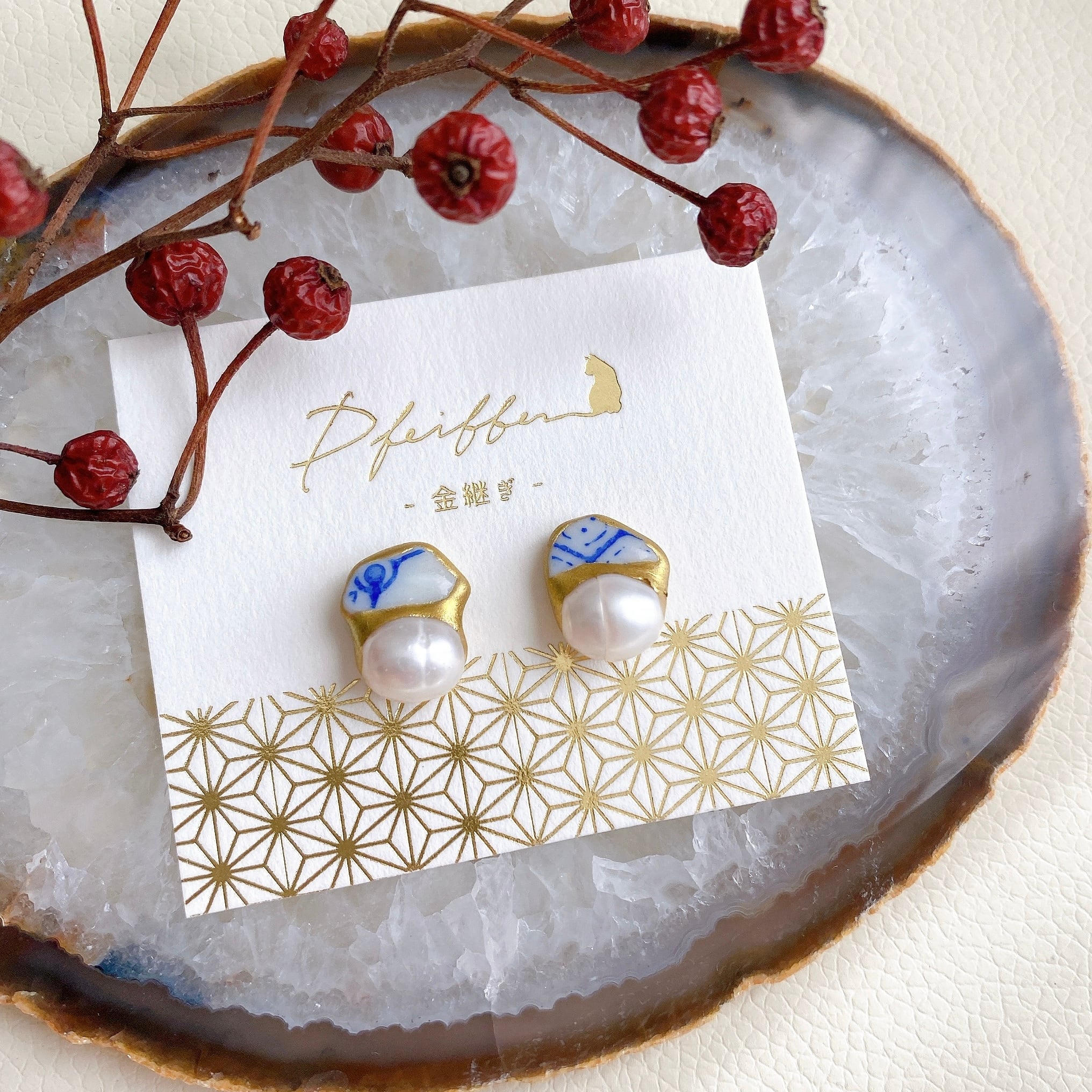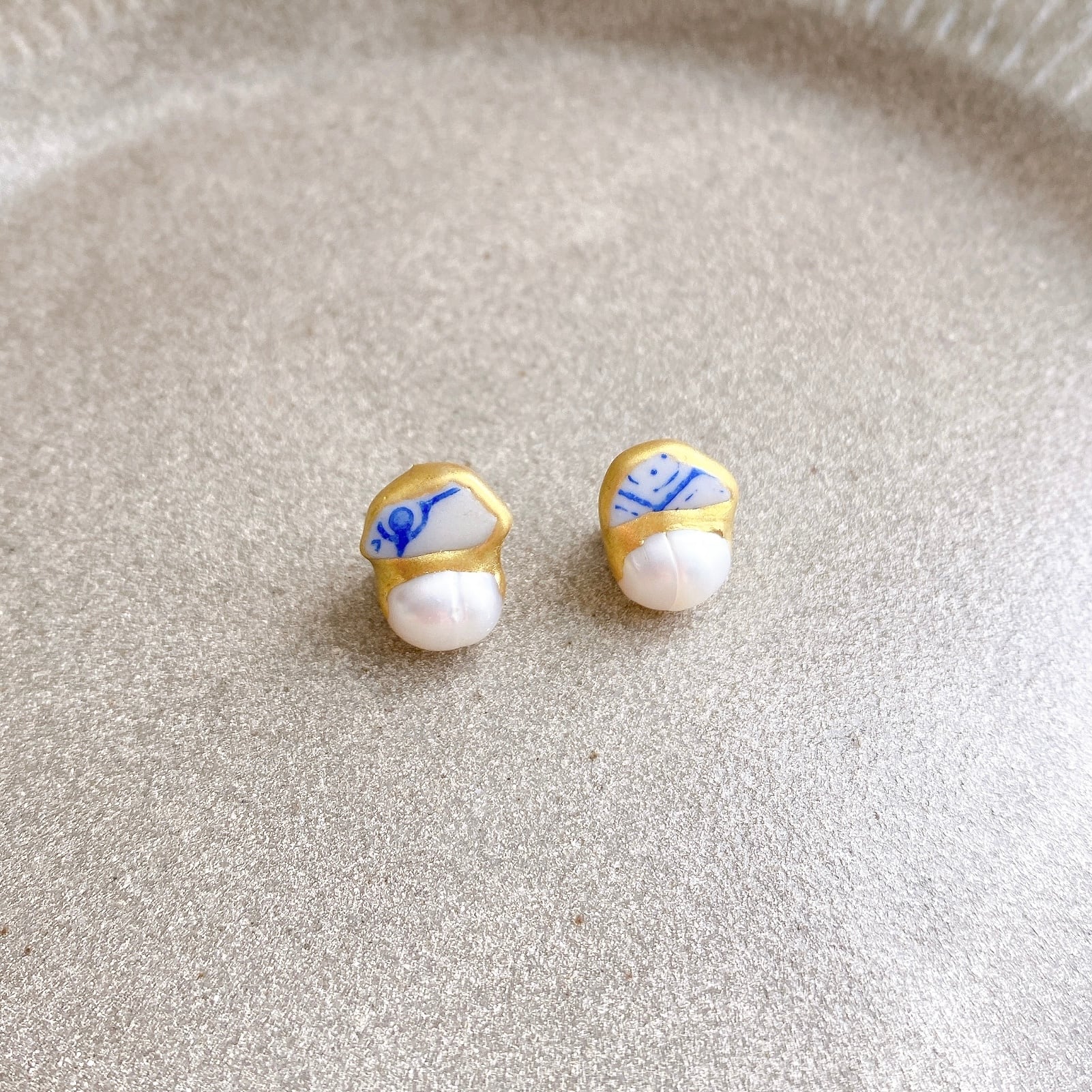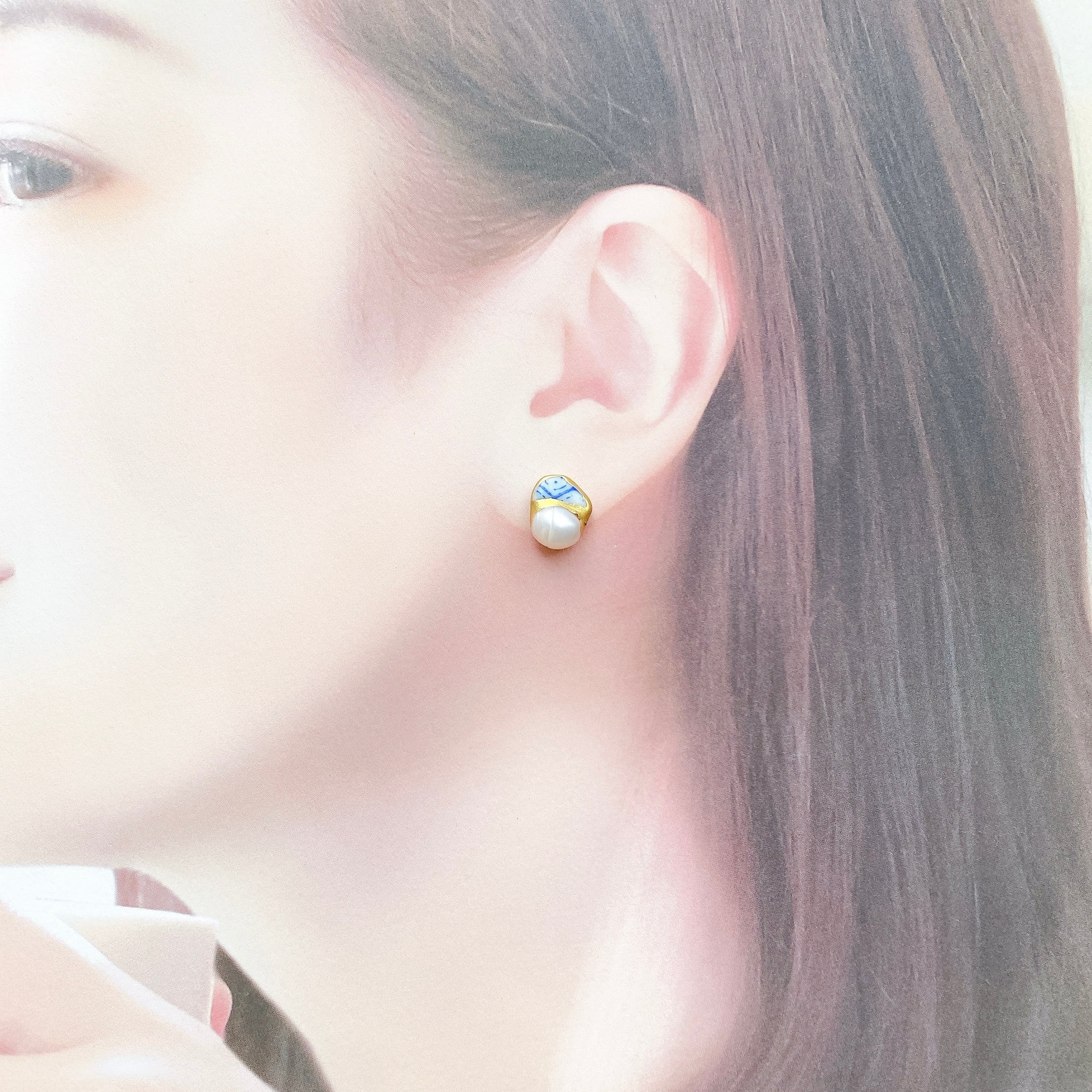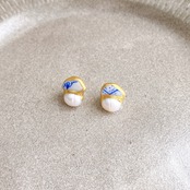 【シー陶器】淡水パール 金継ぎピアス/イヤリング